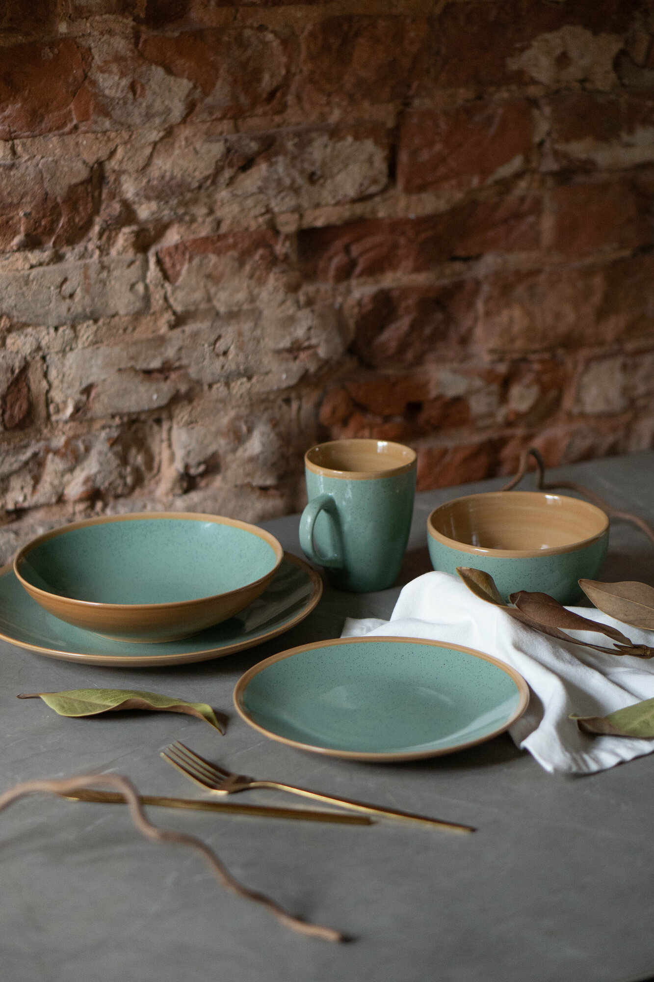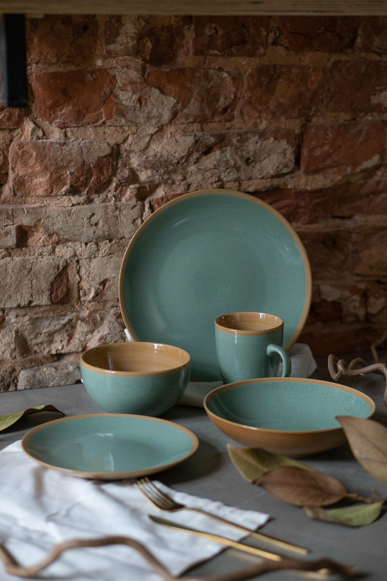 Купить Набор посуды на 2 персоны 10 предметов "Stone green" керамика, столовый сервиз обеденный