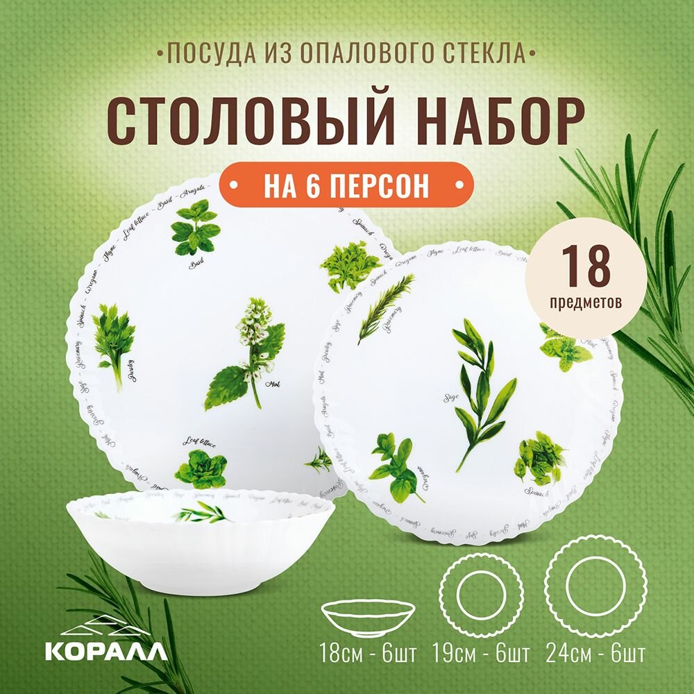 СохранитьНабор посуды на 6 персон 18 предметов "Verdi" стеклокерамика опаловое стекло. Столовый сервиз обеденный с салатниками интересное: