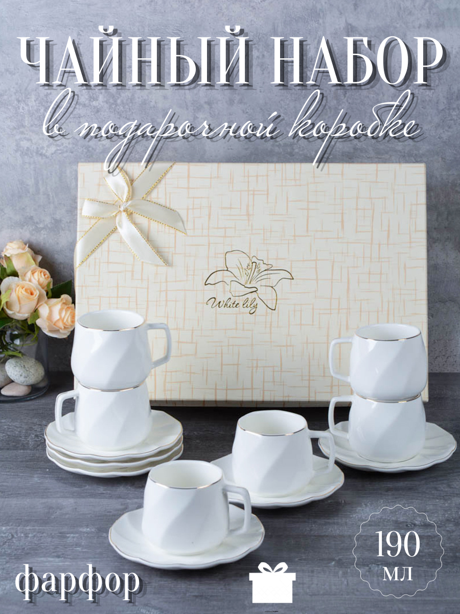 Чайный набор 190 мл "Виталь" 12 предметов в подарочной коробке, фарфор интересное: