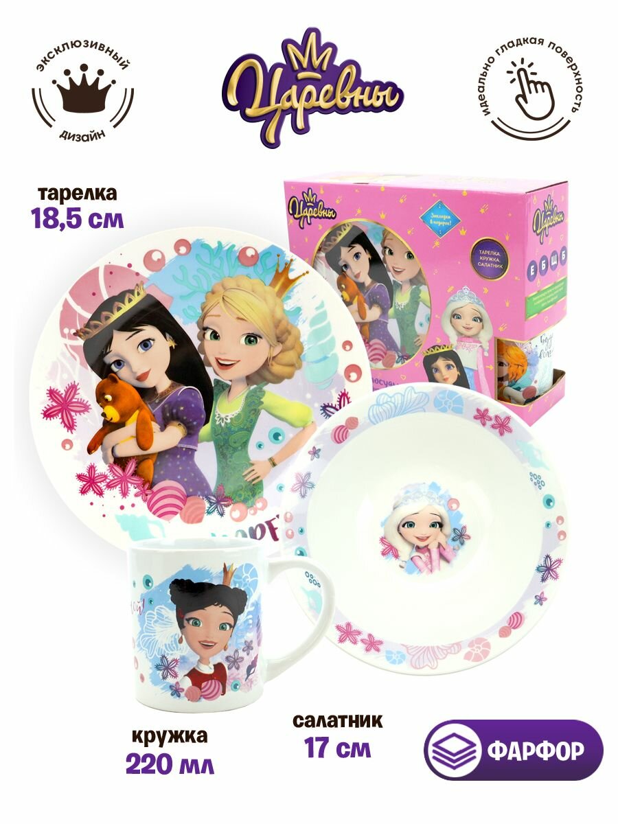 Купить Набор детской посуды в подарочной упаковке Царевны, 3 предмета, фарфор, ND Play, 309964