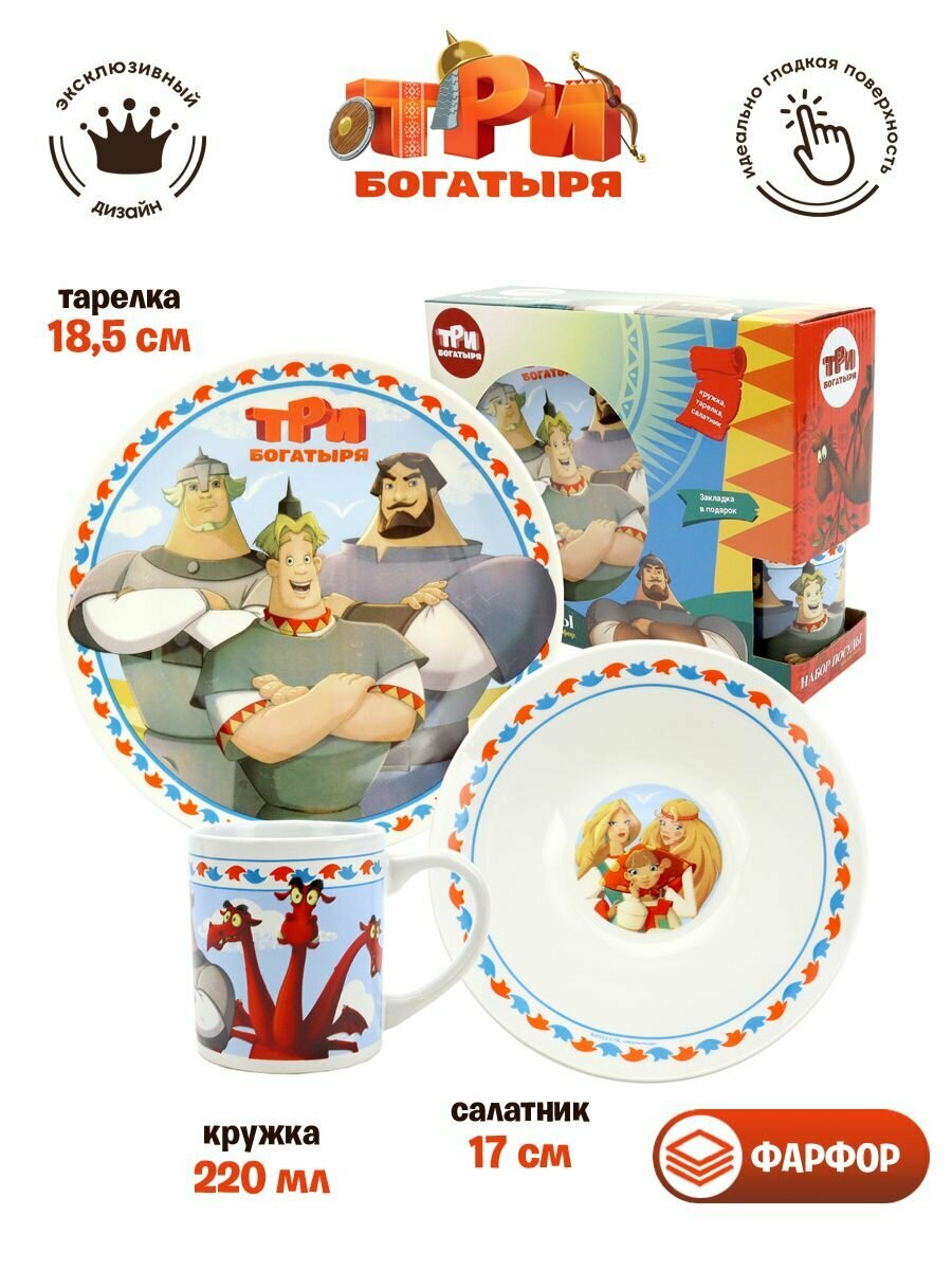Купить Набор детской посуды в подарочной упаковке Три Богатыря, 3 предмета, фарфор, ND Play, 310841