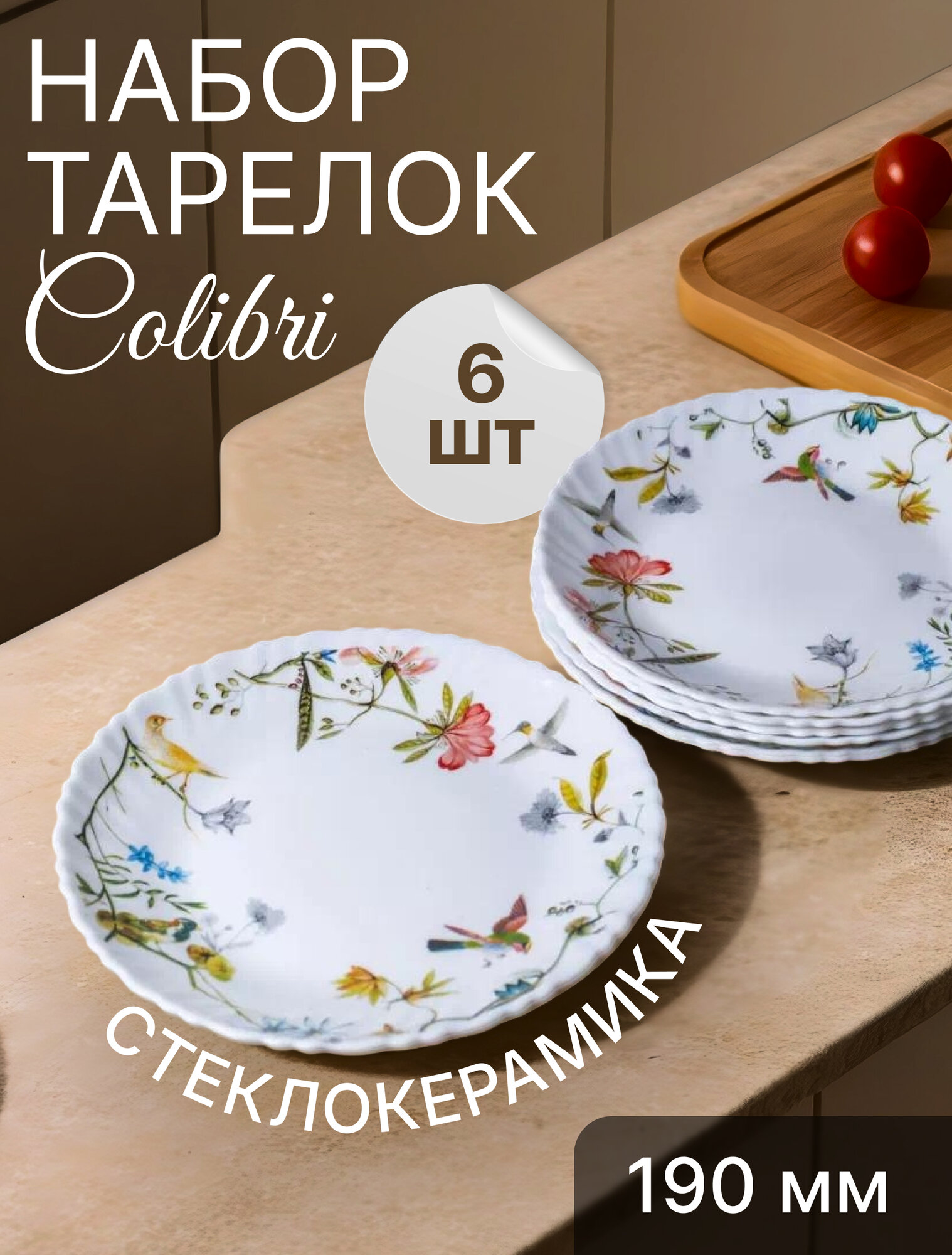 Набор десертных тарелок WHITE LILY "Colibri" 19 см 6 шт, стеклокерамика интересное: