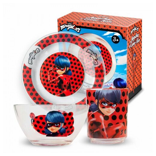 Купить Набор "Леди Баг и Супер Кот" Дизайн 2, (3 предмета, подарочная упаковка), стекло