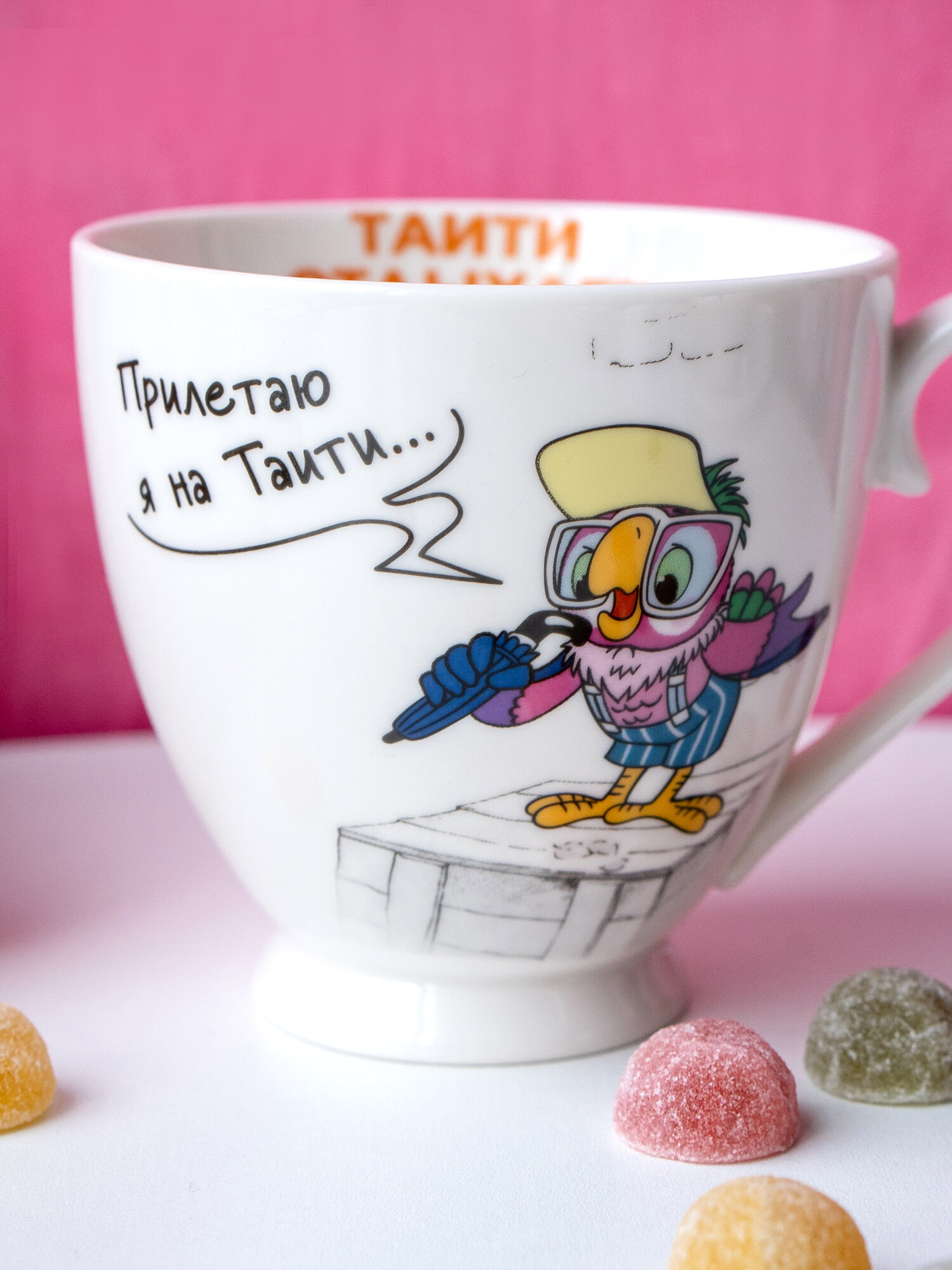 СохранитьЧайная пара фарфор "Попугай Кеша" 440 мл. в подарочной упаковке, чашка с блюдцем, чайный набор на 1 персону. Коралл. интересное: