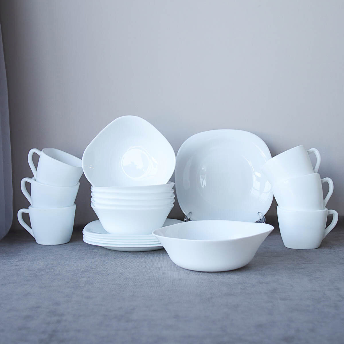 Купить Столовый набор "Белоснежный квадрат" 19 предметов с кружками