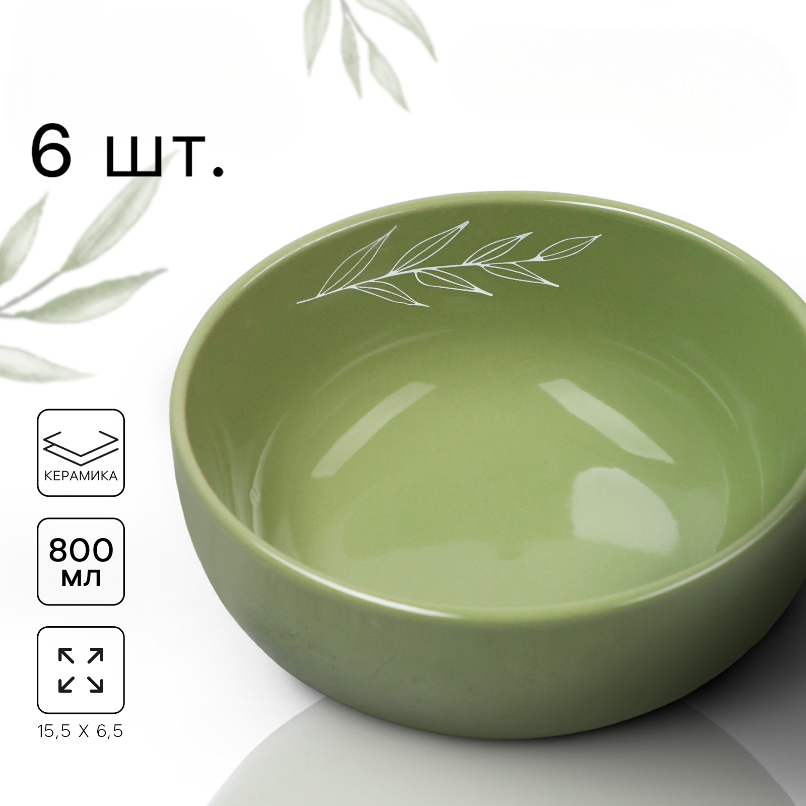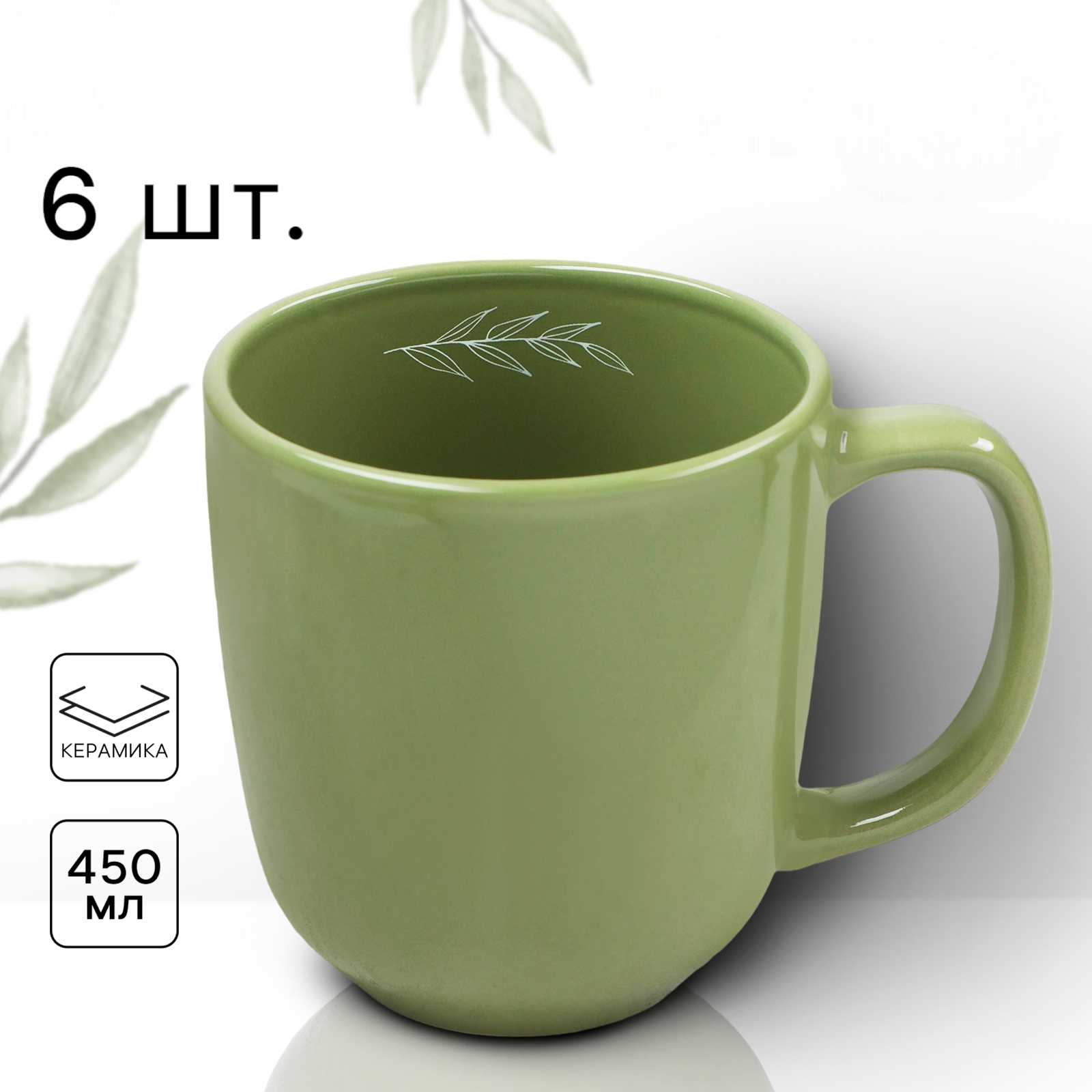 Купить Набор посуды столовой на 6 персон с кружками, 18 предметов "Оливковая ветвь", сервиз обеденный керамический, цвет зеленый