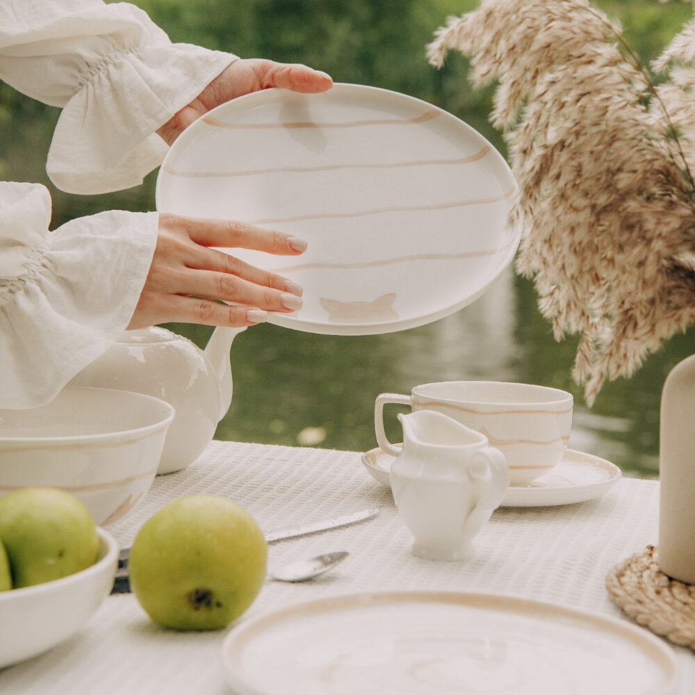 Набор посуды столовой на 6 персон с кружками, 18 предметов "Ласточки", керамика, сервиз обеденный