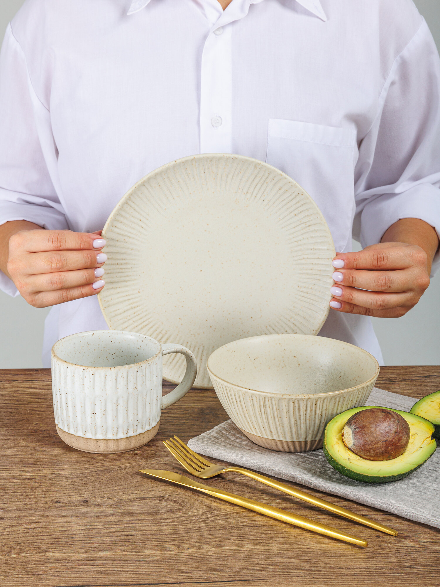 Набор посуды на 1 персону, 3 предмета "Ласточки", сервиз для завтрака, керамика