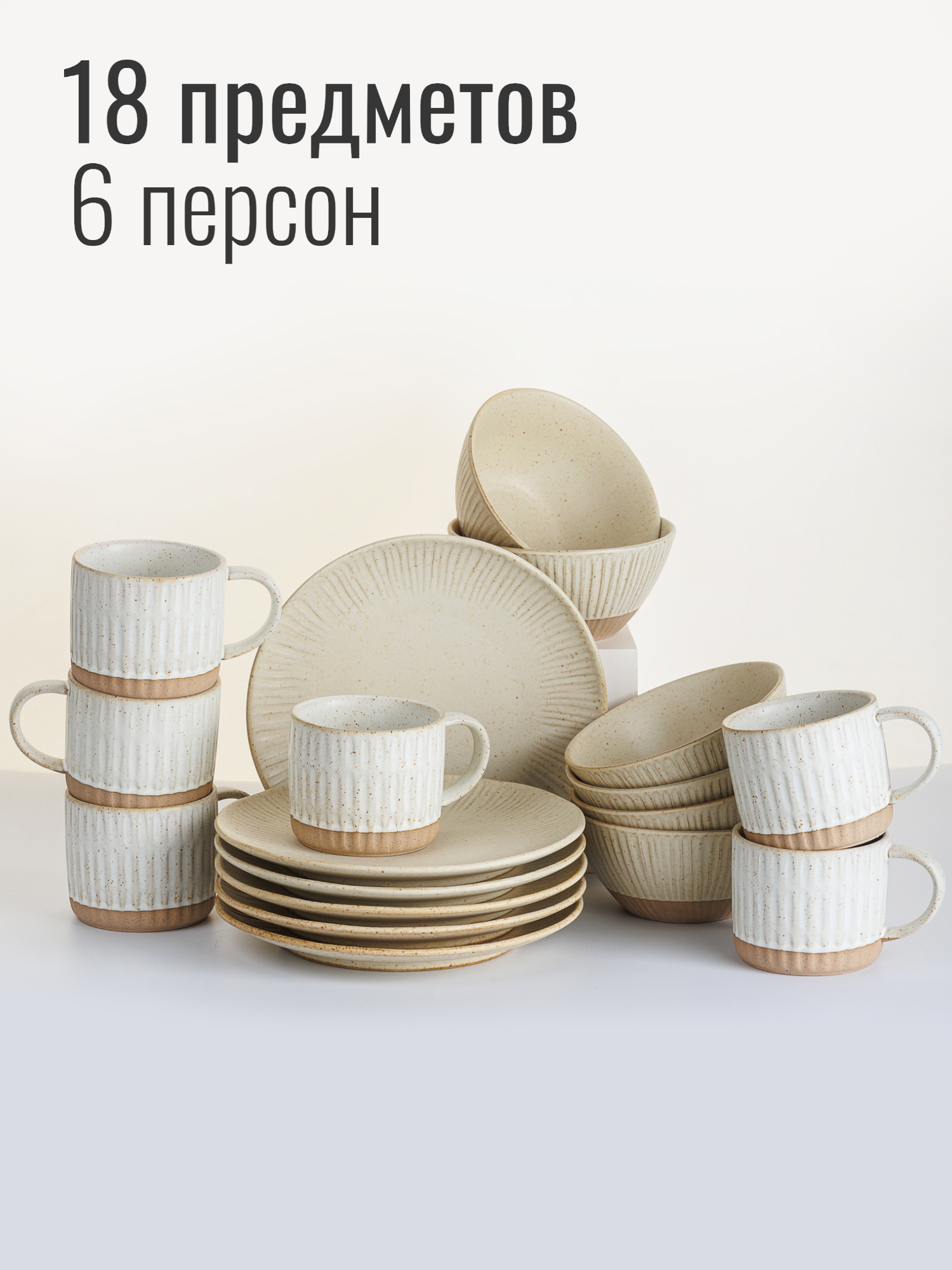 Купить Набор посуды столовой на 6 персон с кружками, 18 предметов "Sicilia", сервиз обеденный из керамики