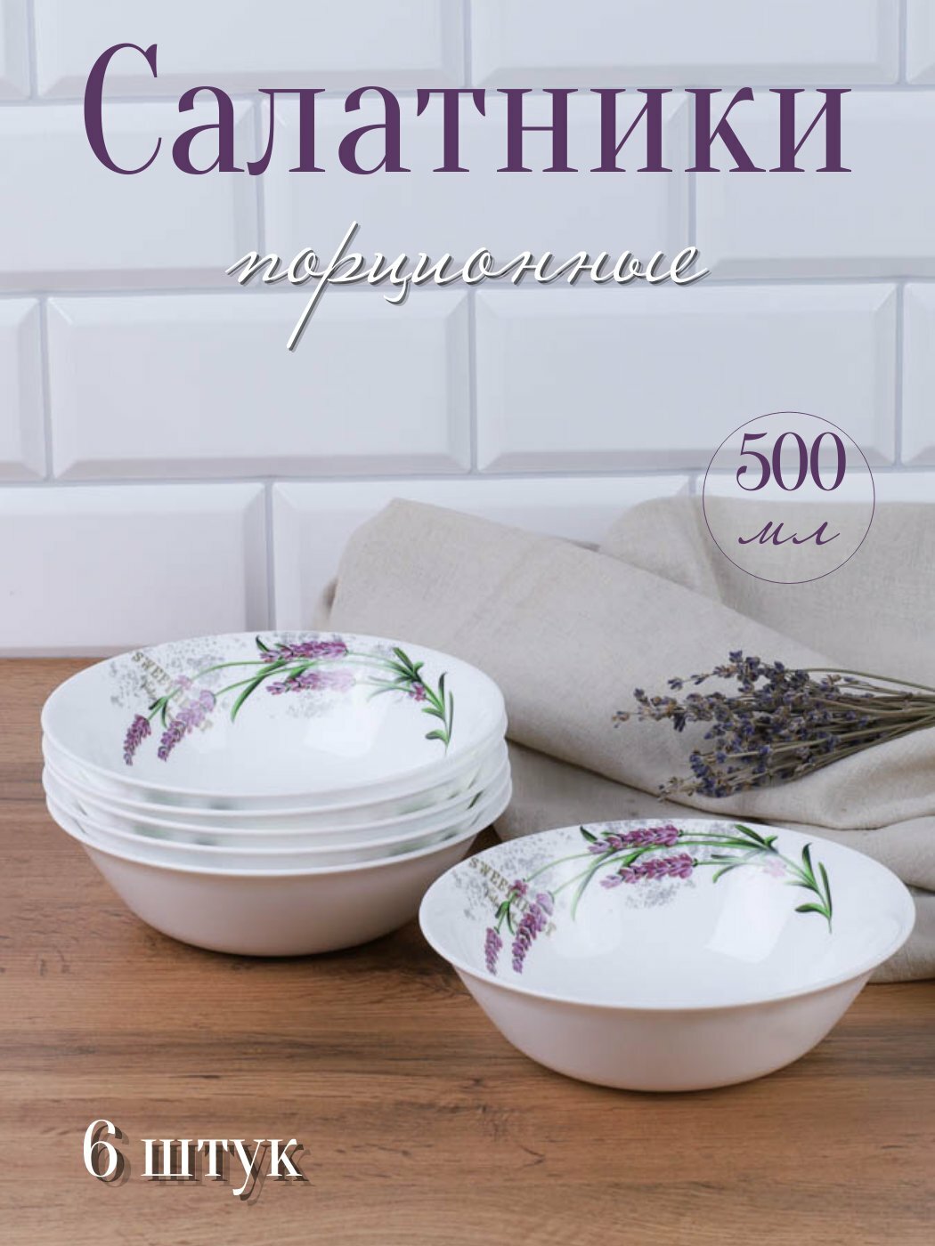 Салатники 500 мл "Lavender" 6 штук, маленькие глубокие тарелки интересное: