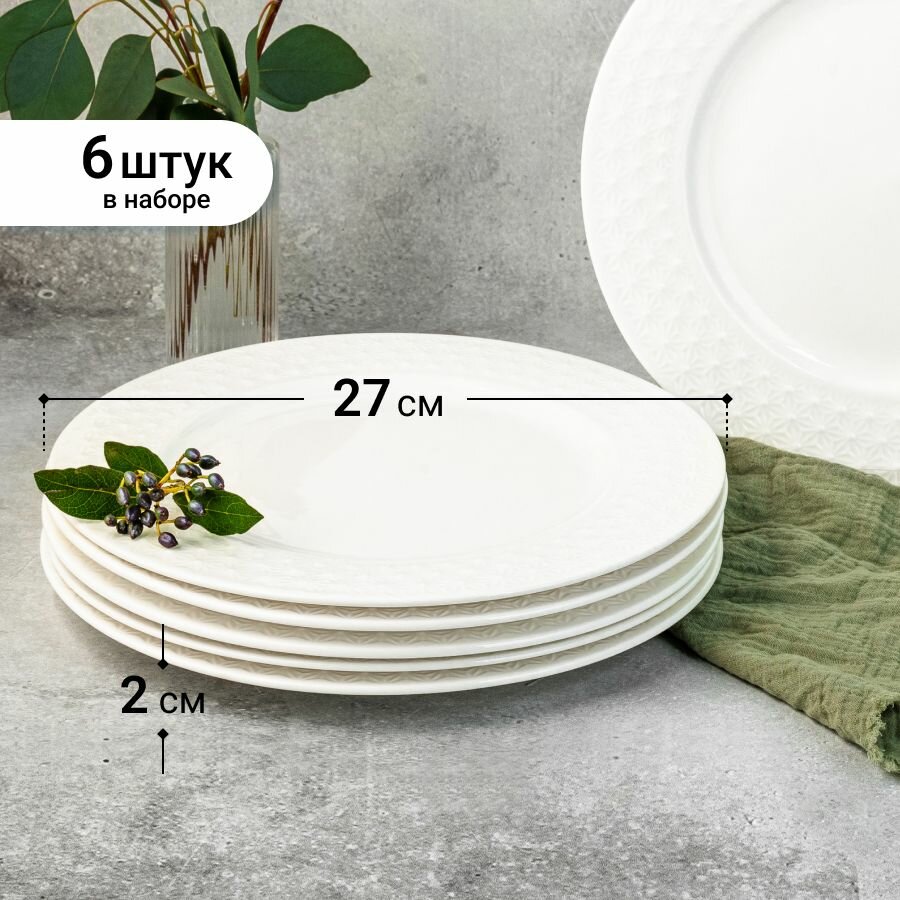 Купить Набор посуды столовой на 6 персон 18 предметов "Снежная королева" сервиз обеденный с суповыми тарелками, белый фарфор