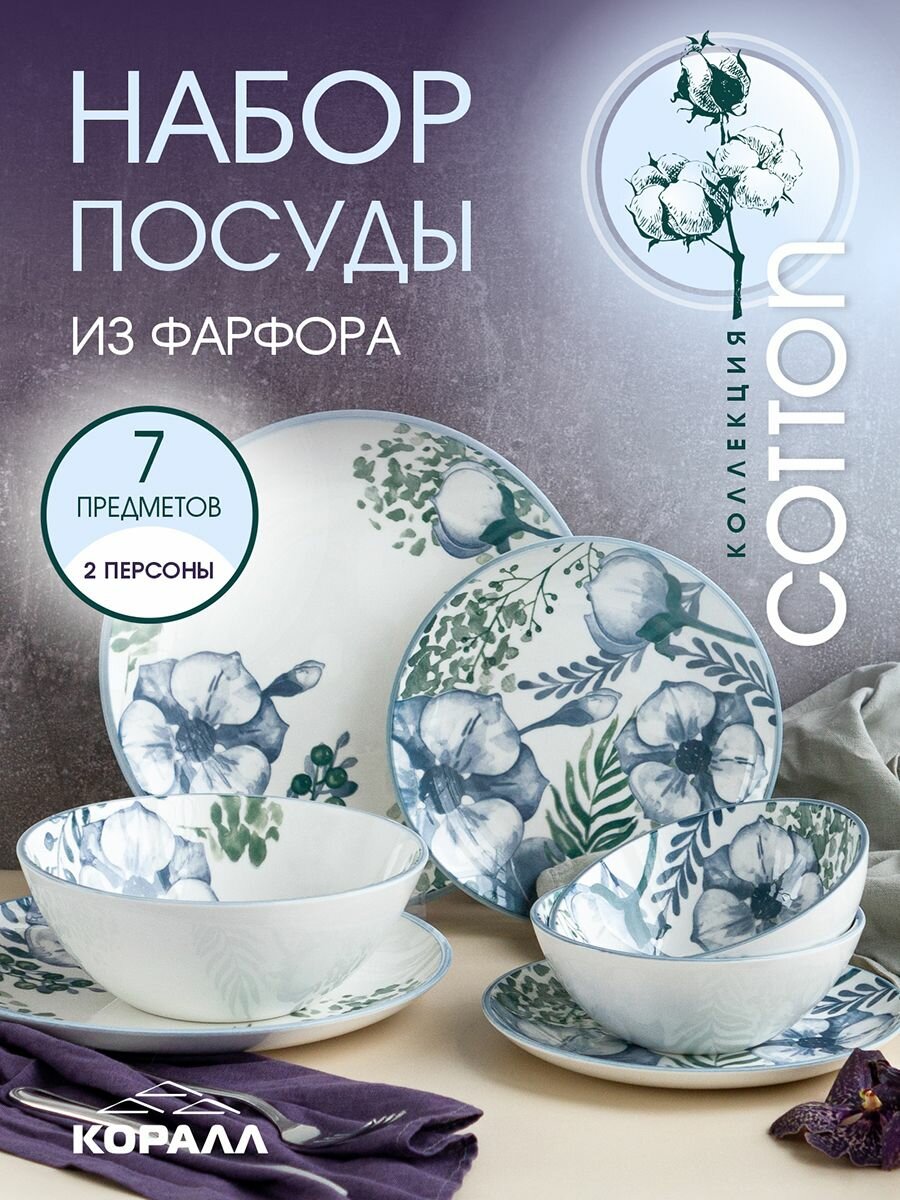 СохранитьНабор посуды столовой фарфор "Cotton" 7 предметов на две персоны столовый сервиз обеденный интересное: