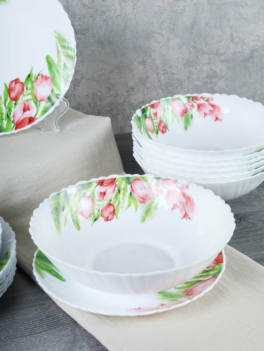 Набор столовой посуды 19 предметов "Тюльпаны" обеденный сервиз на 6 персон интересное: