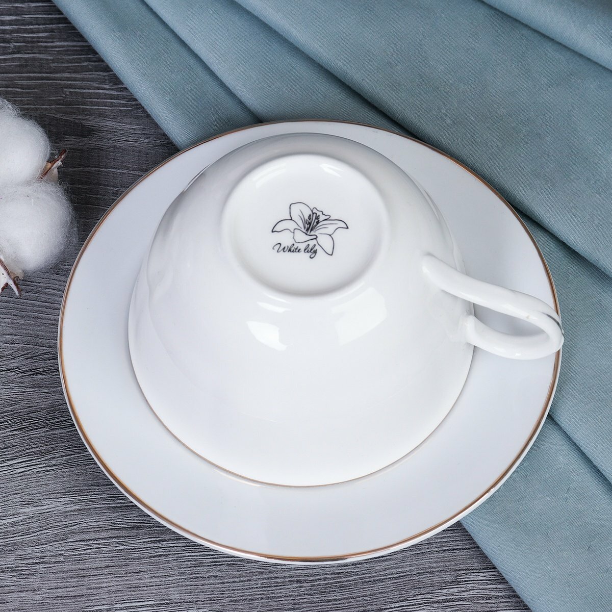 Чайный набор 12 предметов "Золотая грация" на 6 персон, тонкостенный фарфор