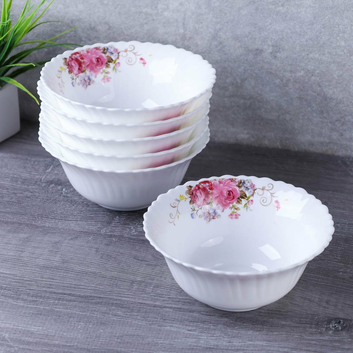 Столовый набор посуды "Розовая композиция" (дэй) - 25 предметов, с салатниками