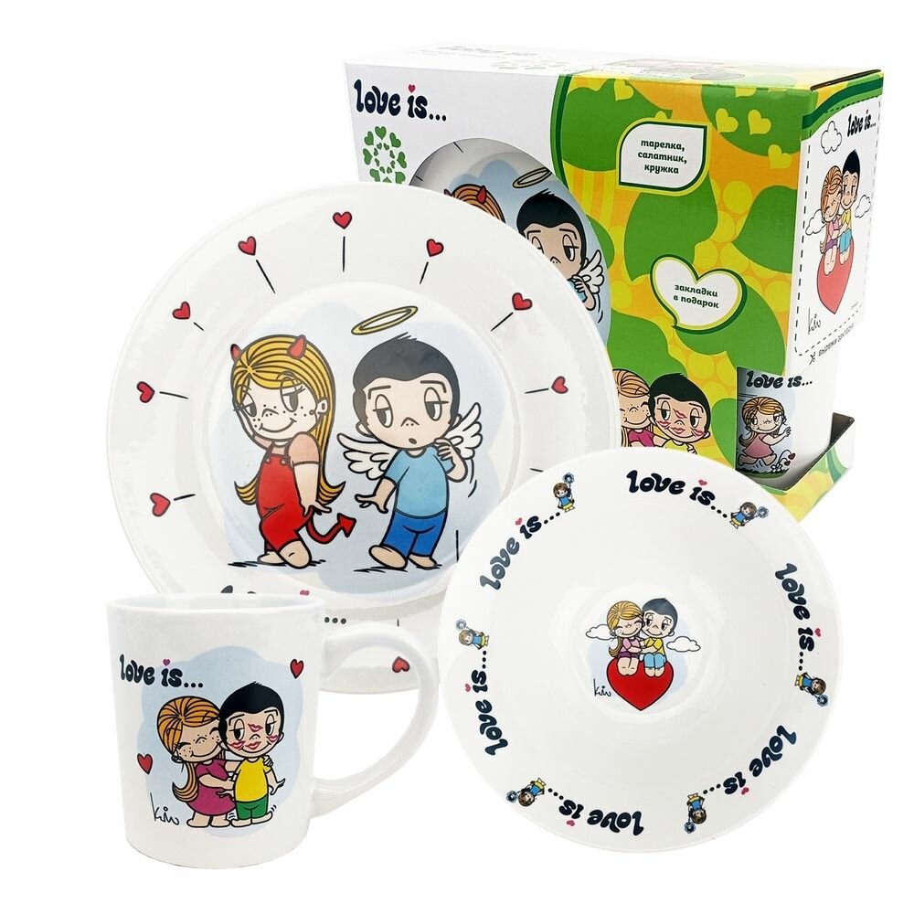 Купить Набор детской посуды в подарочной упаковке "Love is.", дизайн 1, 3 предмета, фарфор, ND Play, 309929