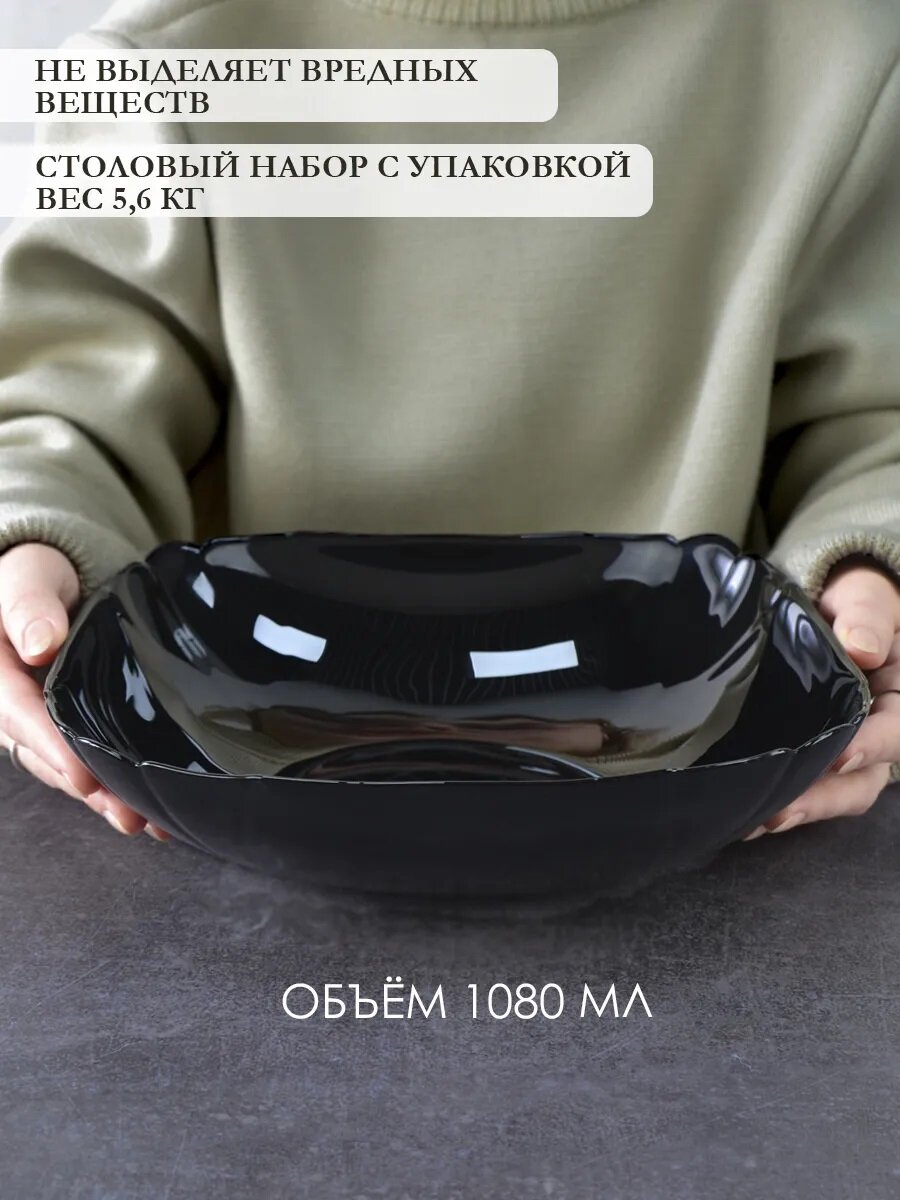 Столовый сервиз на 6 персон из стеклокерамики, 18 предметов, черный