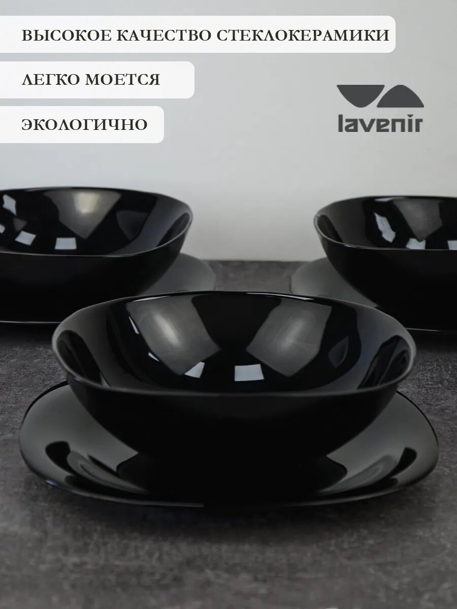 Столовый сервиз на 6 персон из стеклокерамики, 19 предметов, черный