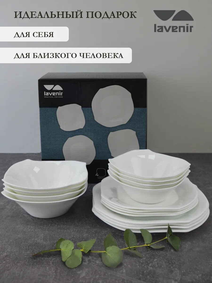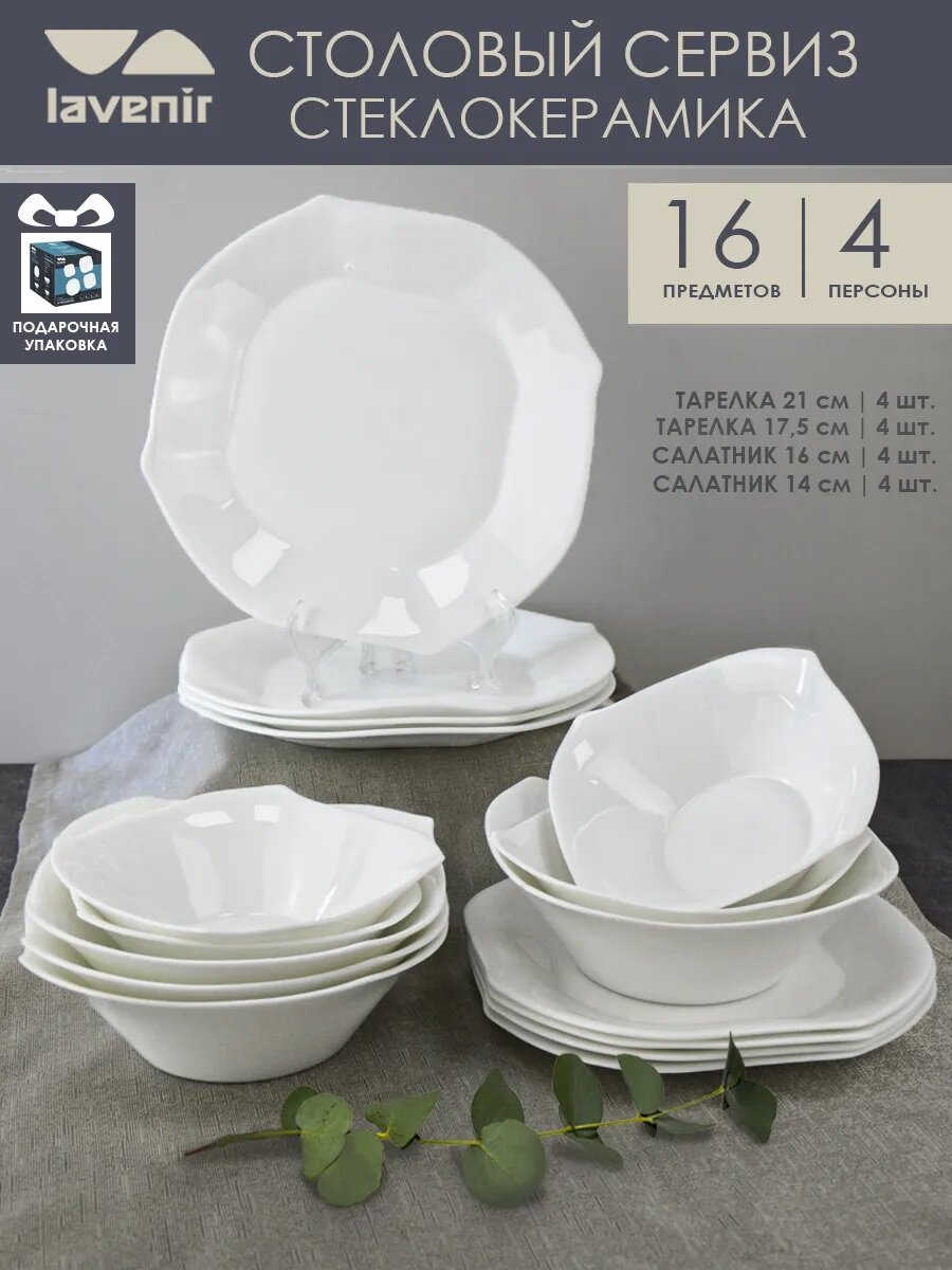 Купить Столовый сервиз на 4 персоны из стеклокерамики, 16 предметов, белый