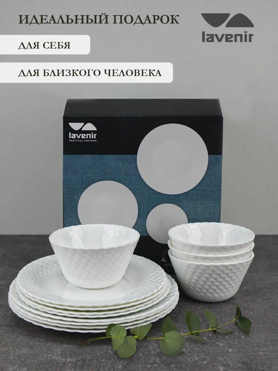 Столовый сервиз на 4 персоны из стеклокерамики, 12 предметов, белый интересное: