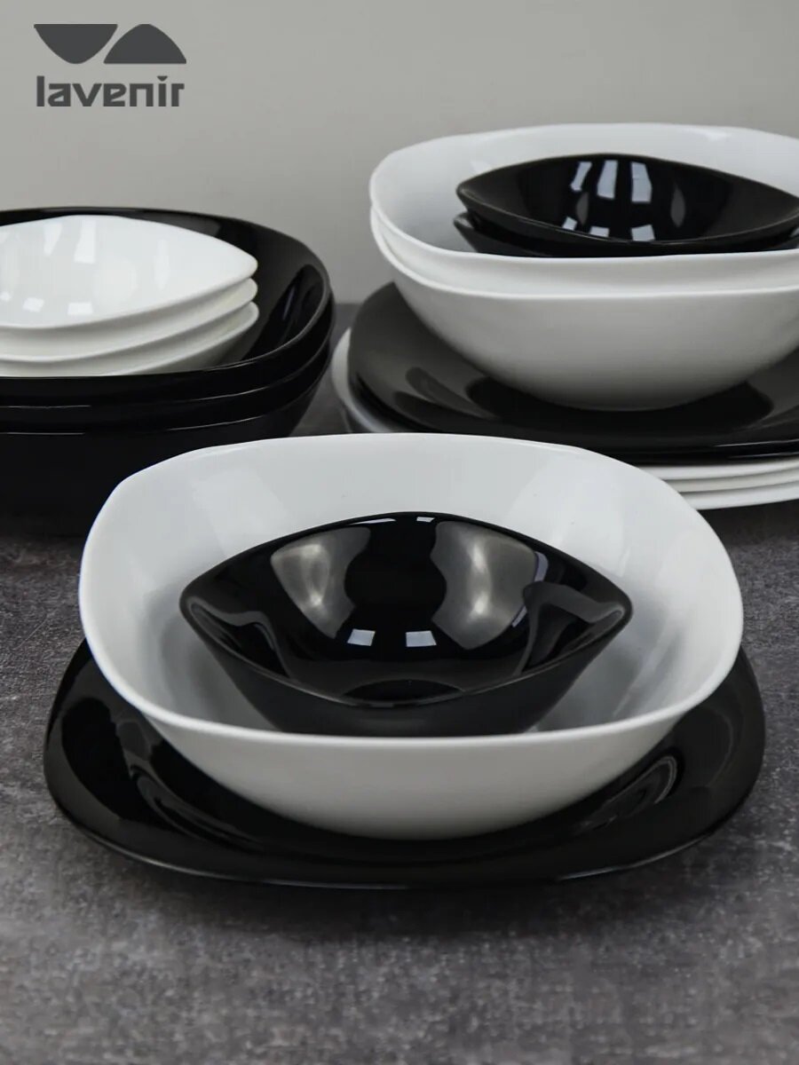 Купить Столовый сервиз на 6 персон из стеклокерамики, 18 предметов, черно-белый