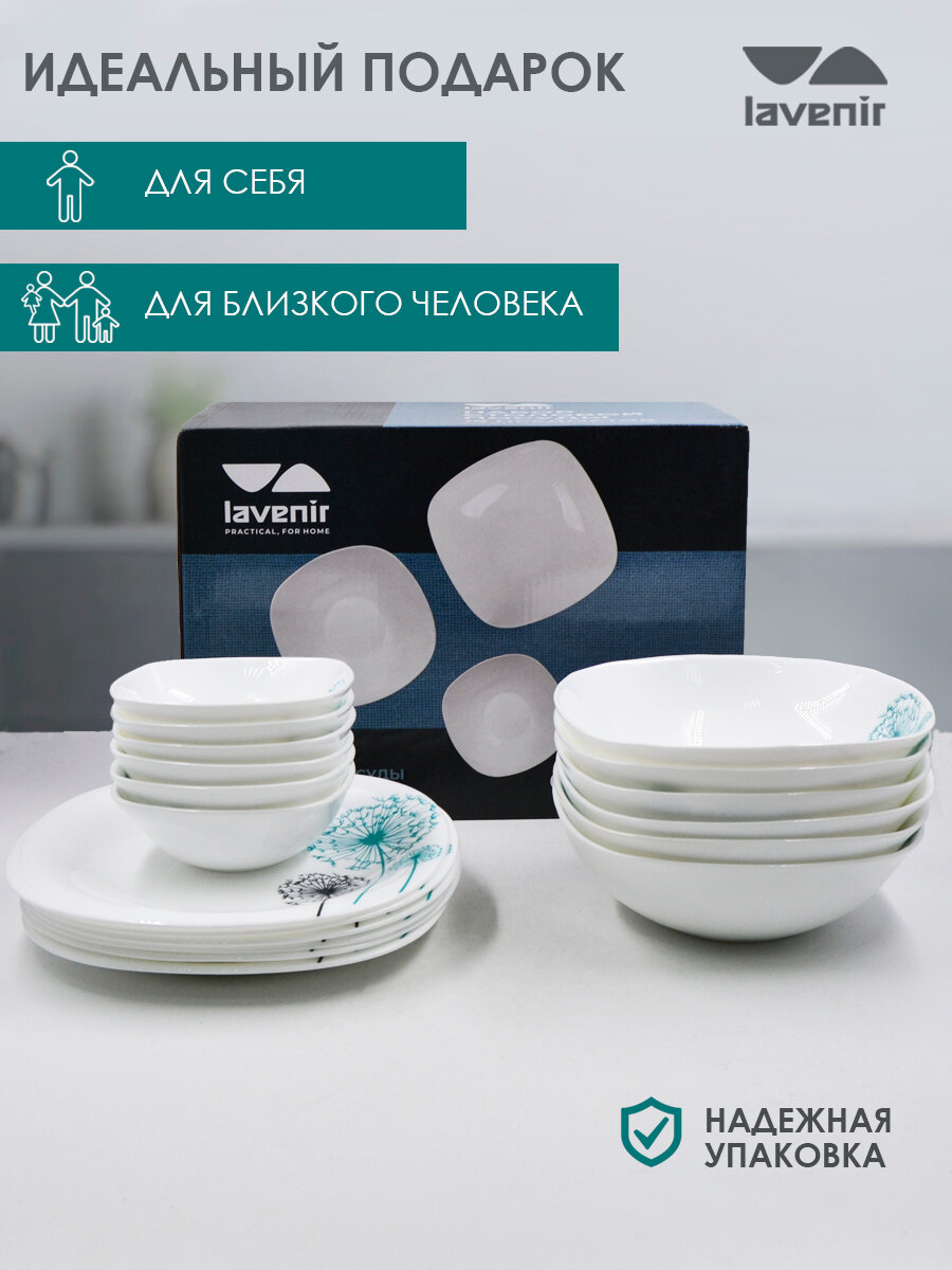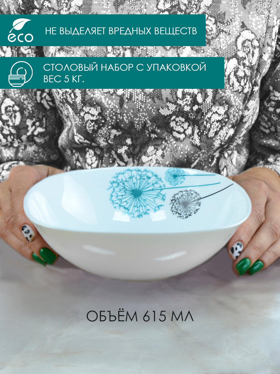 Купить Столовый сервиз на 6 персон из стеклокерамики, 18 предметов, одуванчики