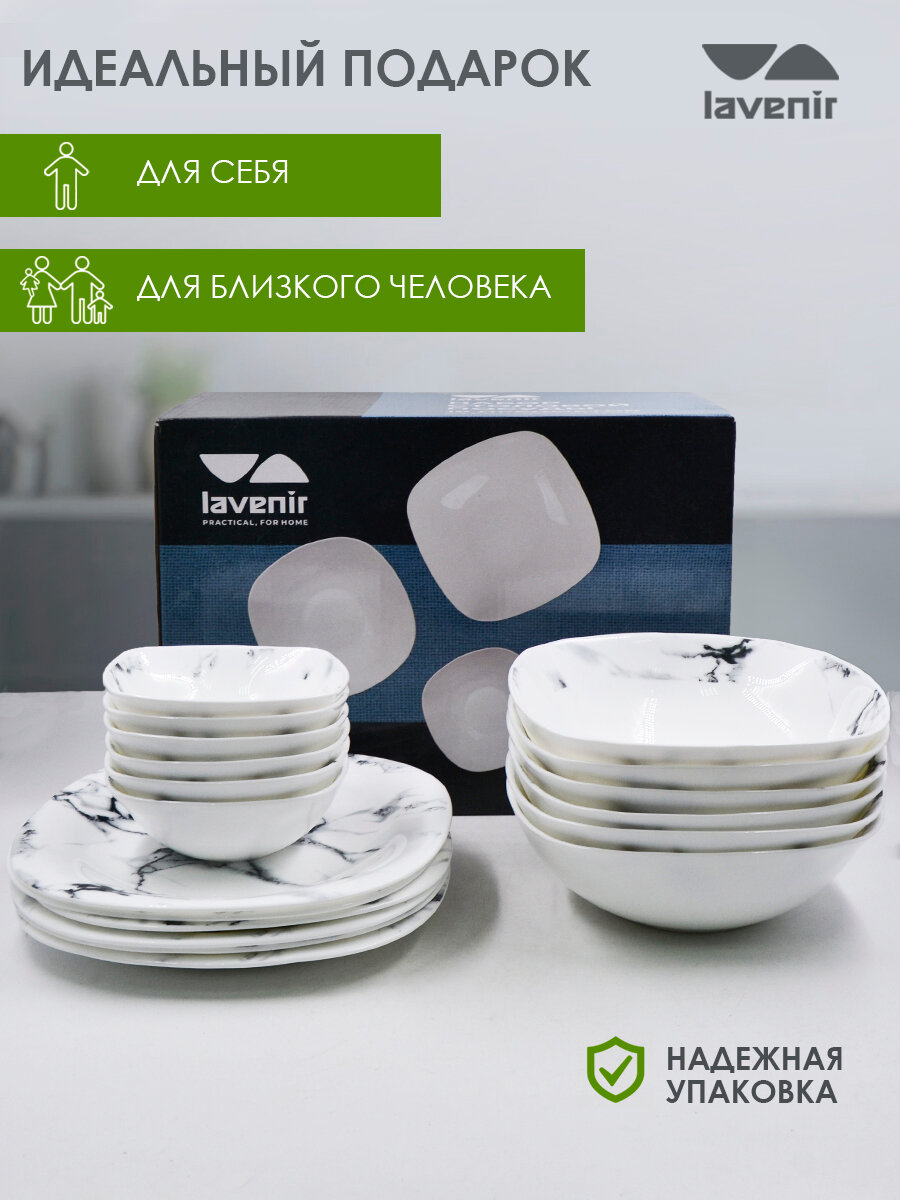 СохранитьСтоловый сервиз на 6 персон из стеклокерамики, 18 предметов, мрамор интересное:
