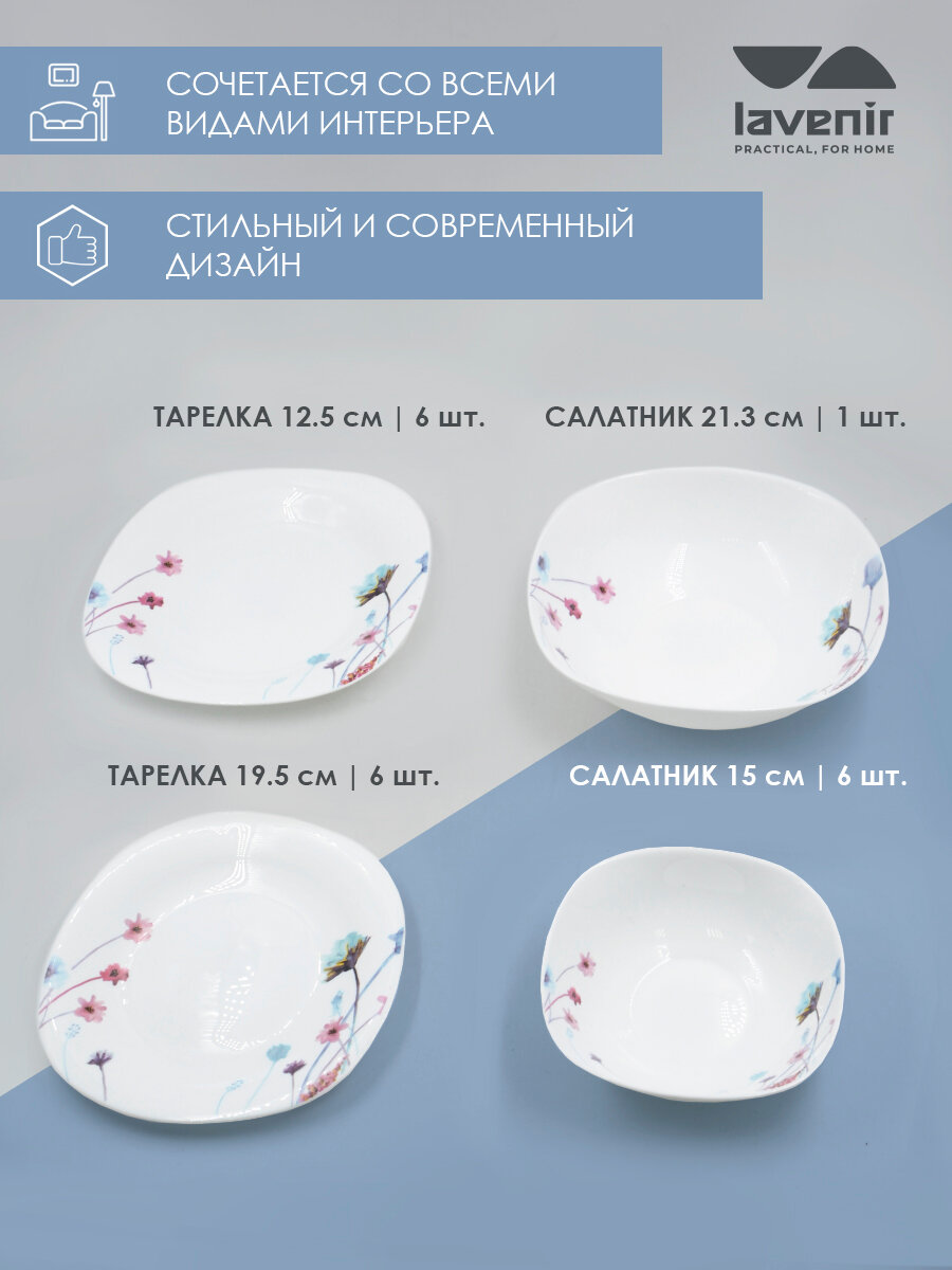 Купить Столовый сервиз на 6 персон из стеклокерамики, 19 предметов, альпийский луг