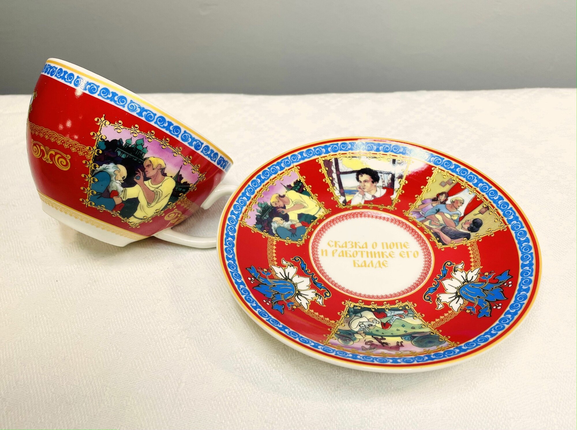Купить Чайная пара, чашка с блюдцем, "А. С. Пушкин, сказка о попе и работнике Балде", федерация, в подарочной коробке