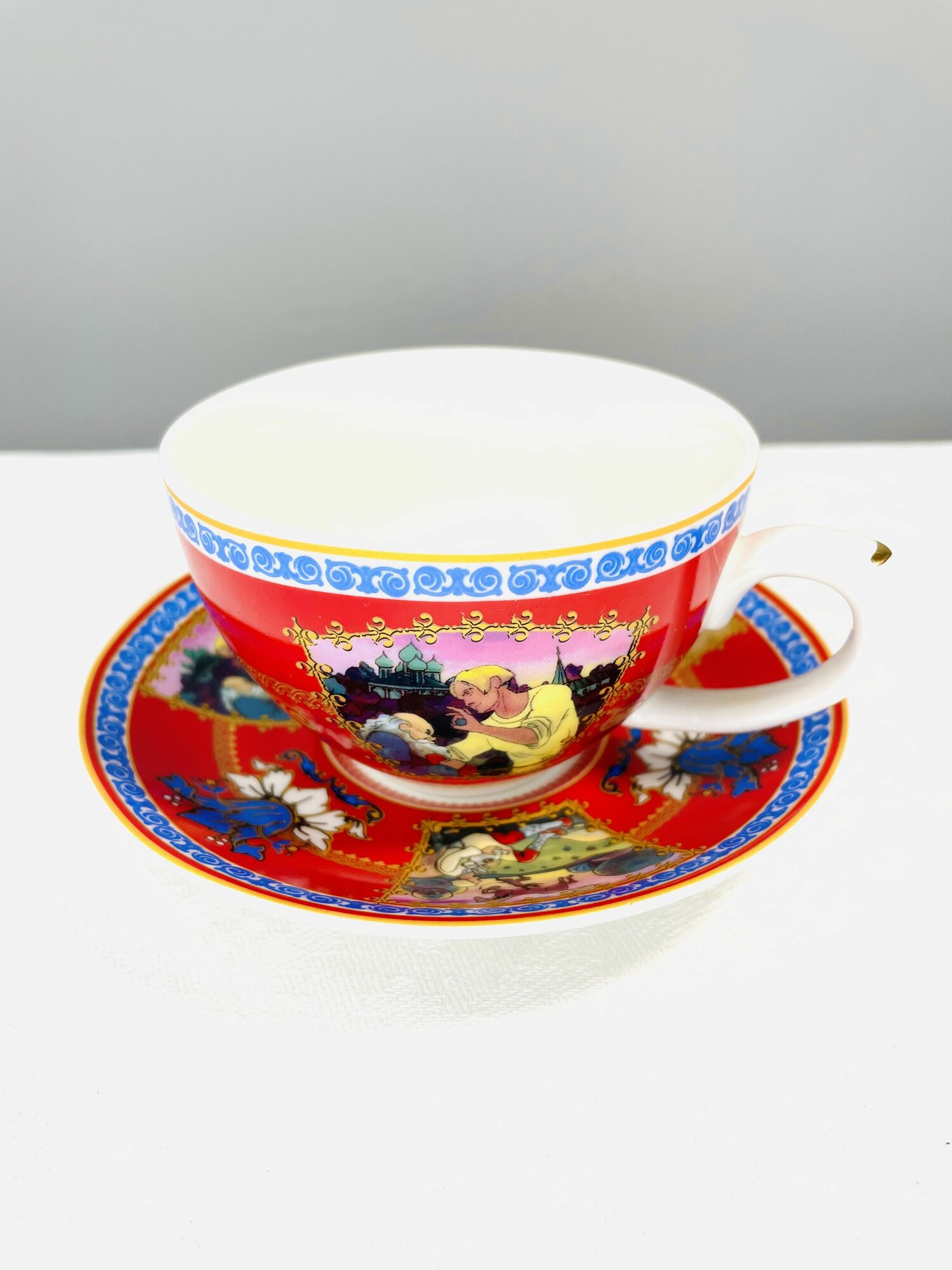 Чайная пара, чашка с блюдцем, "А. С. Пушкин Сказка о золотом петушке", федерация, в подарочной коробке