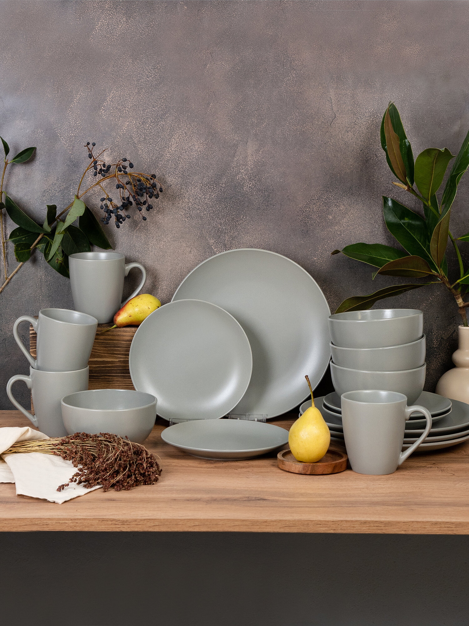 Набор посуды на 4 персоны 16 предметов керамика "Color grey", столовый сервиз обеденный