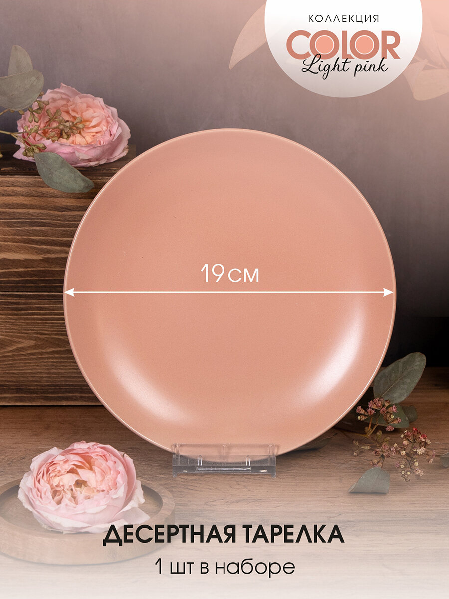Набор посуды на 2 персоны 10 предметов керамика "Color ight pink", столовый сервиз обеденный