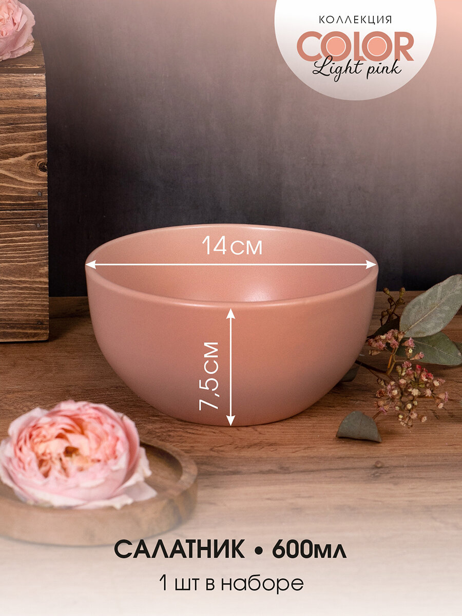 Набор посуды на 4 персоны 16 предметов керамика "Color light pink" с салатниками , столовый сервиз обеденный