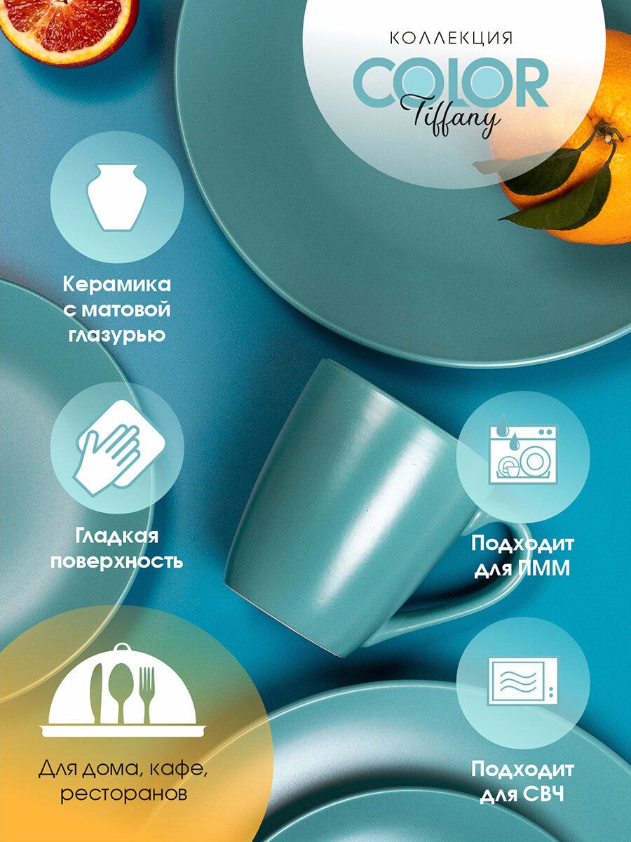 Набор посуды на 4 персоны 16 предметов керамика "Color tiffany", столовый сервиз обеденный