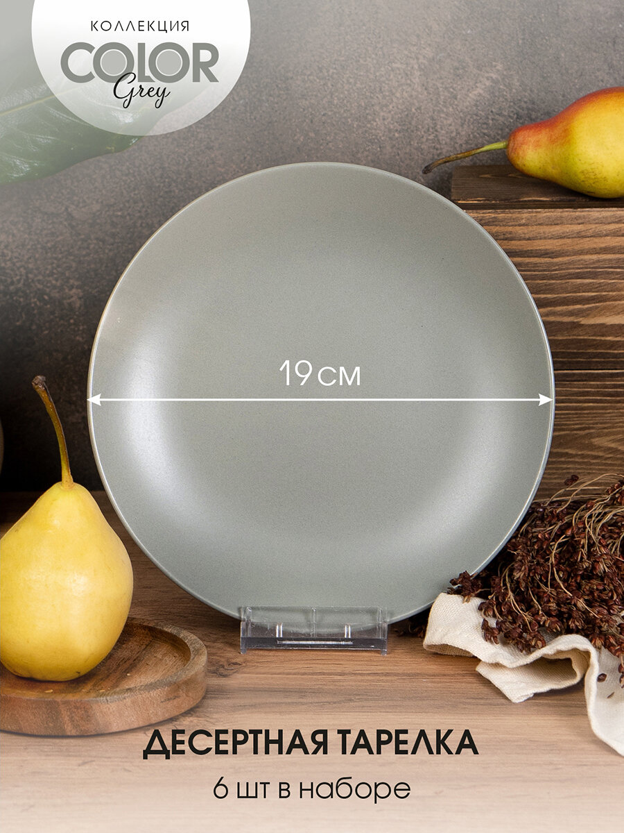 Набор посуды на 6 персон 18 предметов керамика "Color grey", столовый сервиз обеденный