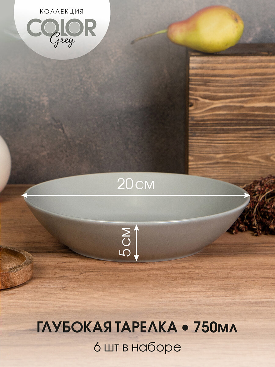 Купить Набор посуды на 6 персон 18 предметов керамика "Color grey", столовый сервиз обеденный