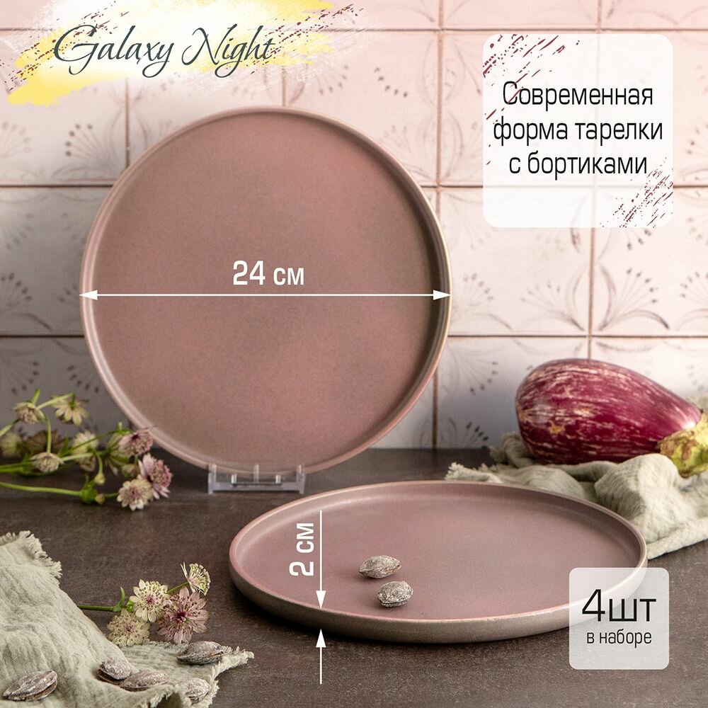 Набор посуды из керамики 16 предметов 4 персоны "Galaxy night" в подарочной упаковке с глубокими тарелками, столовый сервиз обеденный