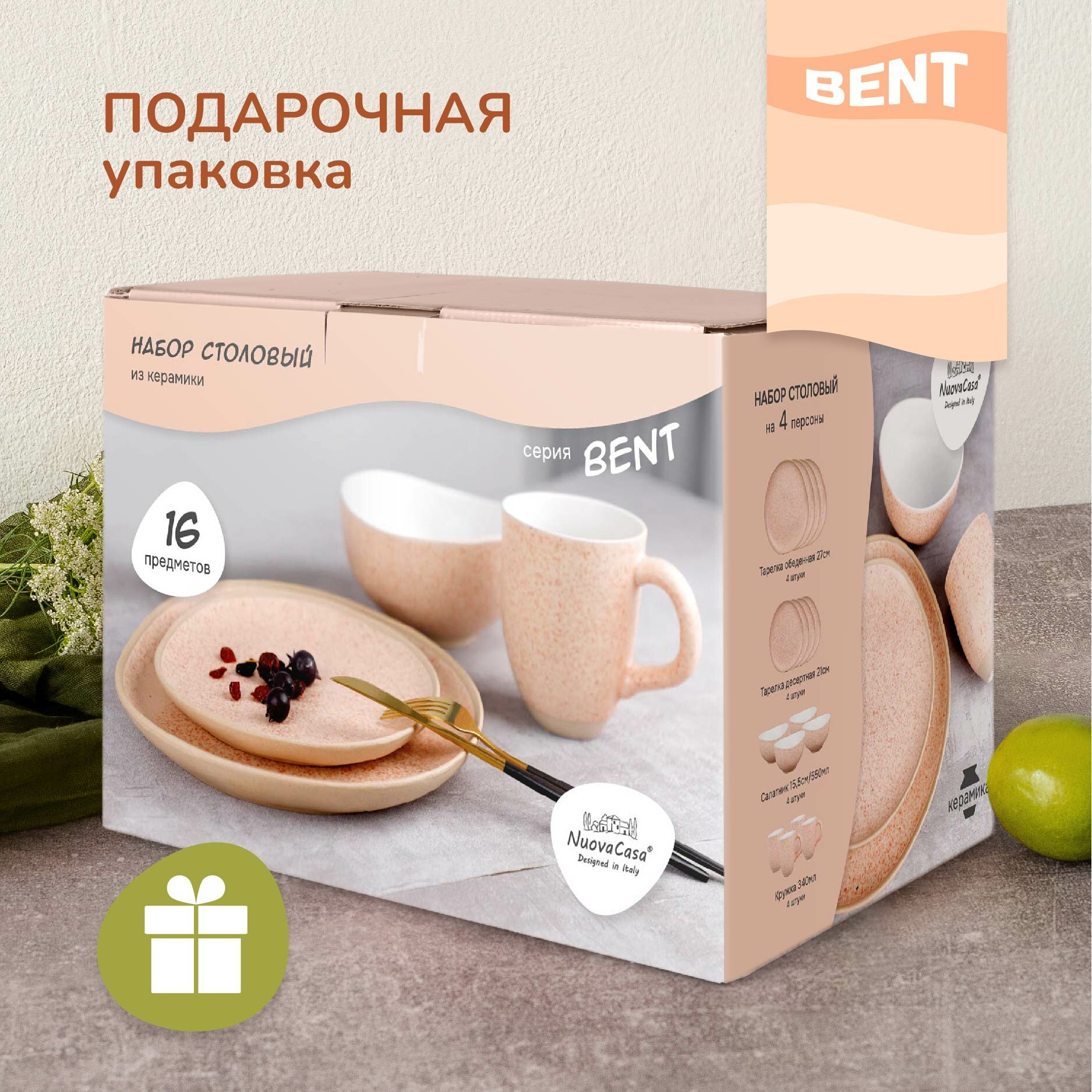 Купить Набор посуды из керамики 16 предметов 4 персоны "Bent" в подарочной упаковке, столовый сервиз обеденный
