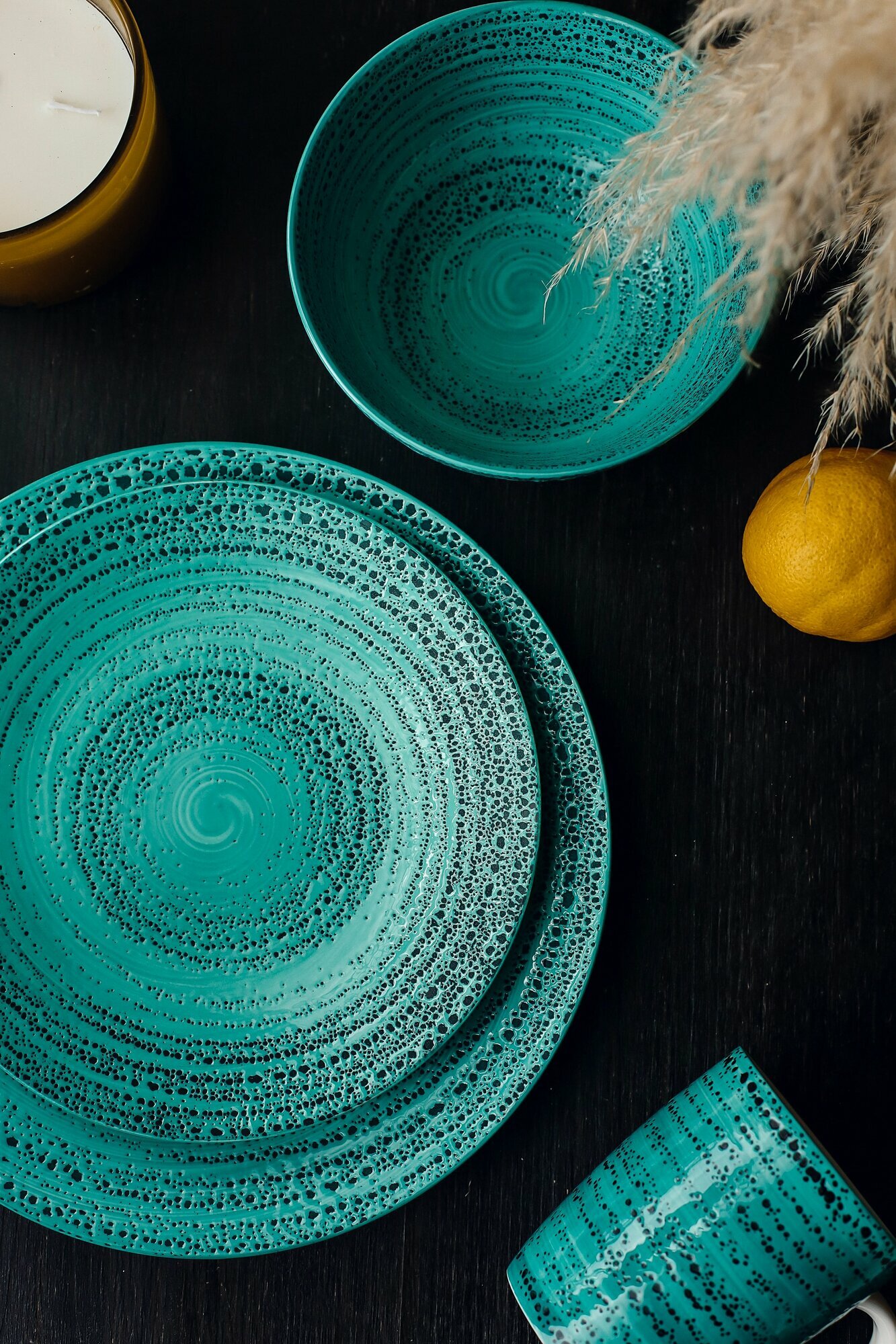 Набор посуды из керамики 16 предметов 4 персоны "Galaxy night" в подарочной упаковке с салатниками, столовый сервиз обеденный
