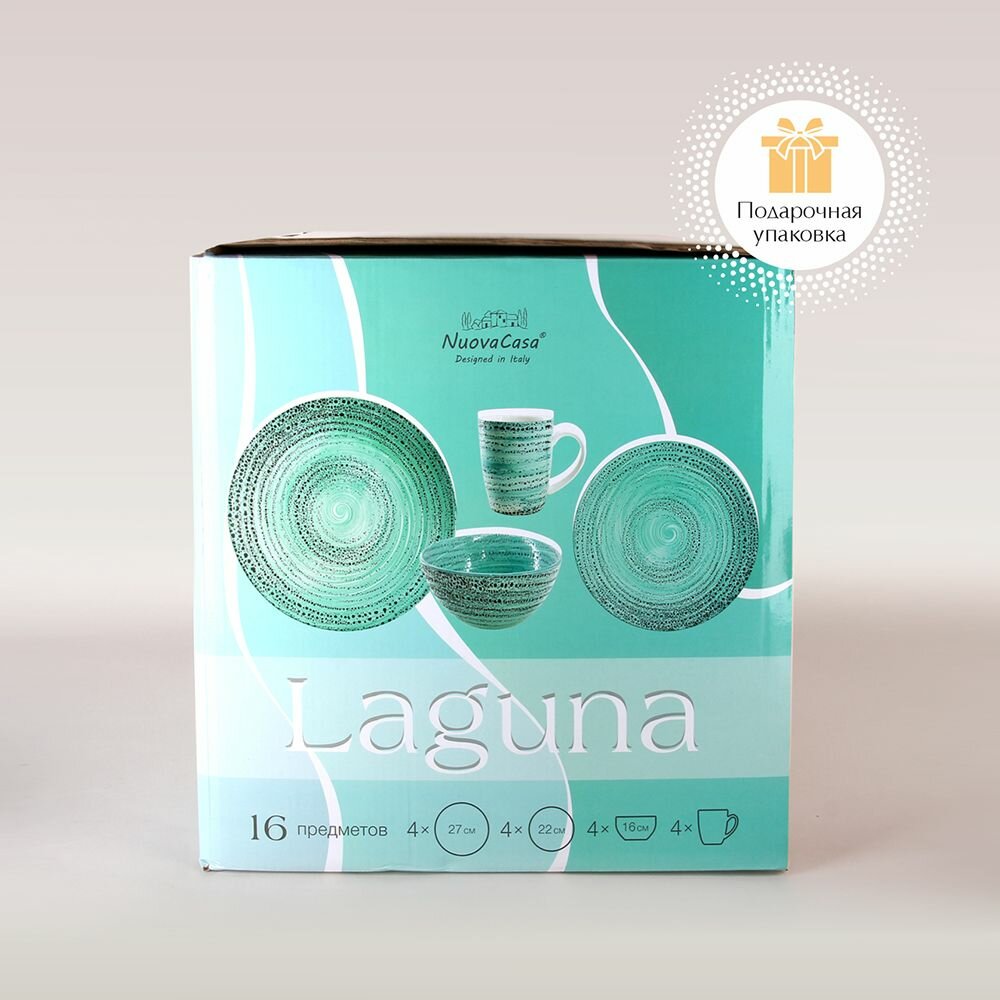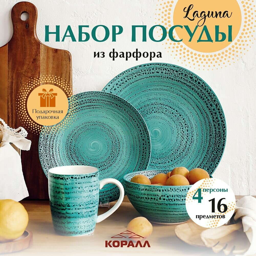 Купить Набор посуды из фарфора на 4 персоны 16 предметов "Laguna", столовый сервиз обеденный в подарочной упаковке