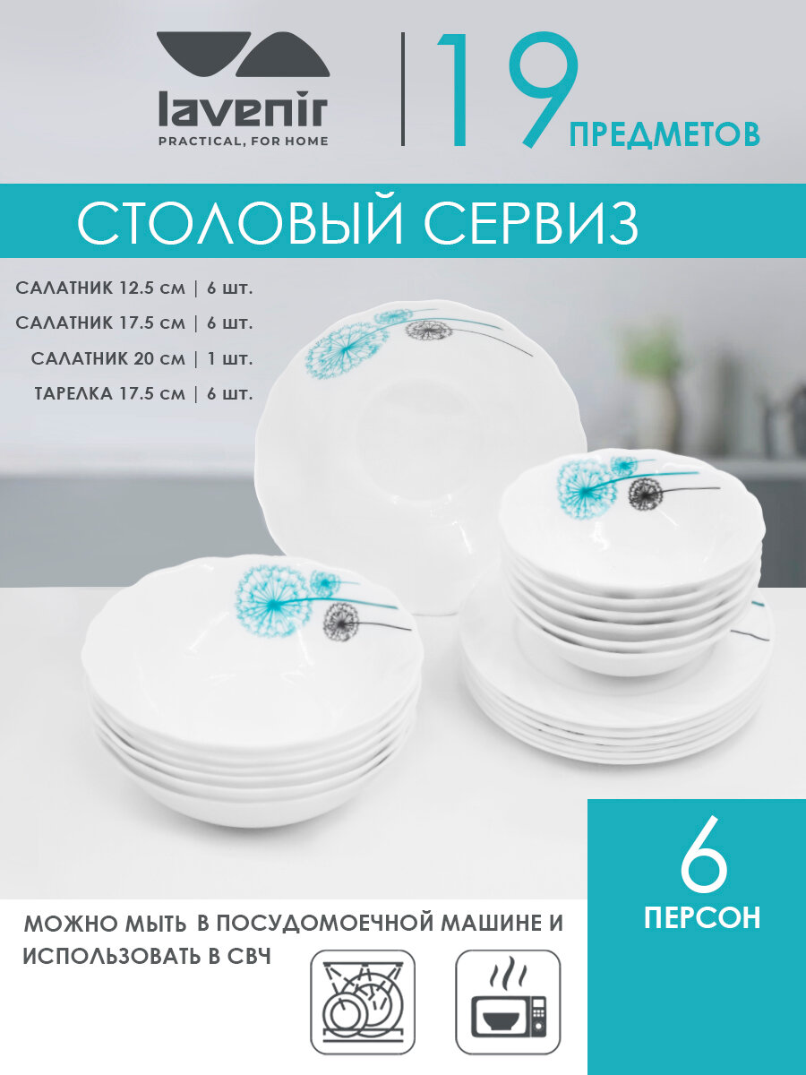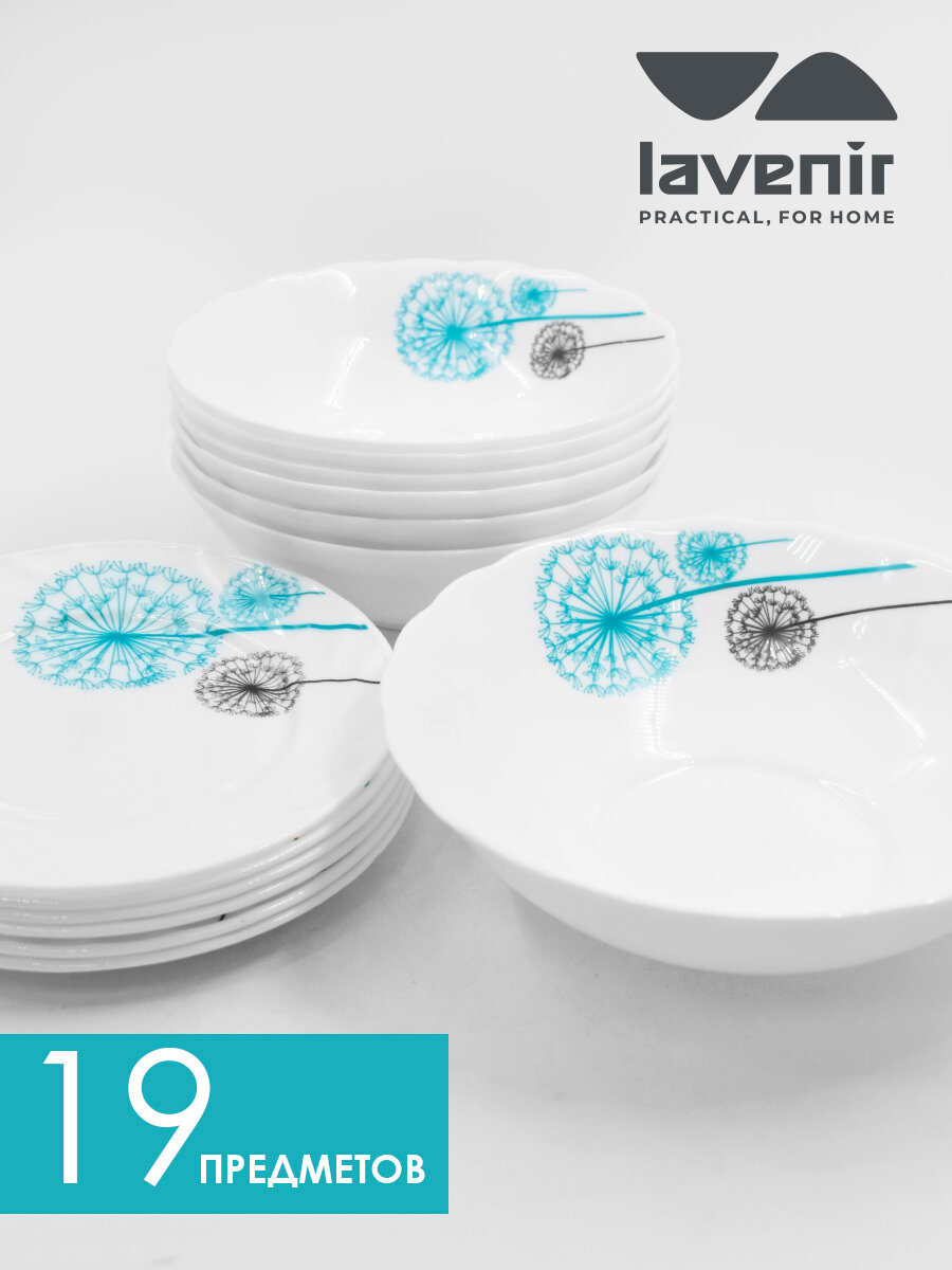 Столовый сервиз на 6 персон из стеклокерамики, 19 предметов, одуванчики интересное: