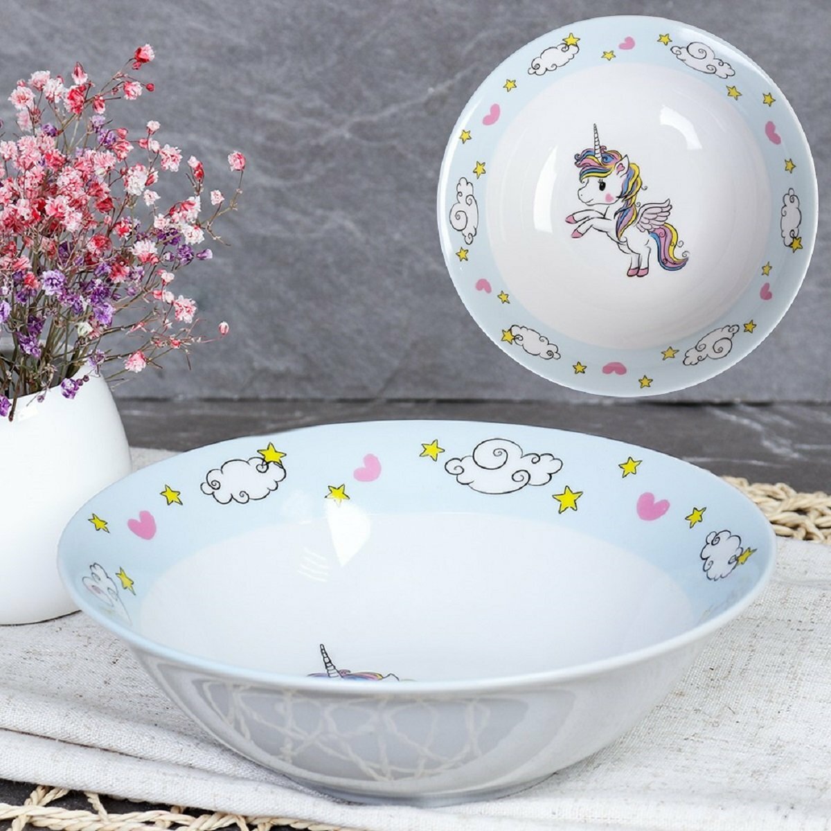 Набор детской посуды 3 предмета "Радужный единорог" посуда для девочки интересное: