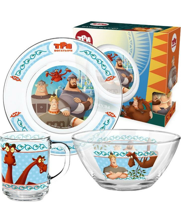 Купить Набор детской посуды в подарочной упаковке ND Play / Три Богатыря, Дизайн 1 (3 предмета, стекло)