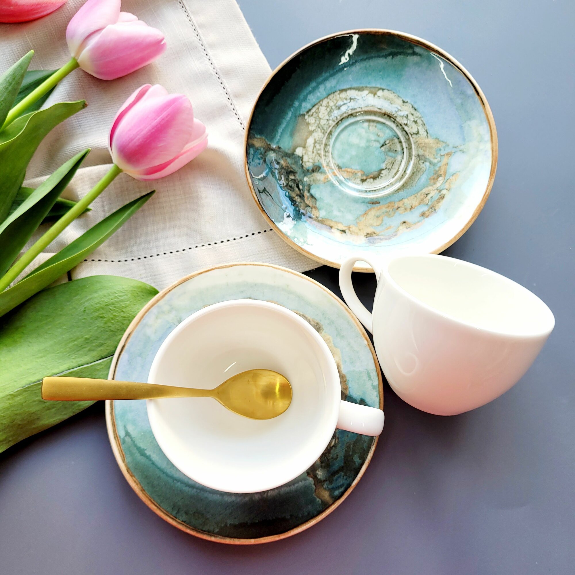 Чайные пары набор 2 шт, чашки с блюдцем синие Bonna "Sphere Ocean" 2 шт, 250 мл. Коробка подходит для подарка. Турция