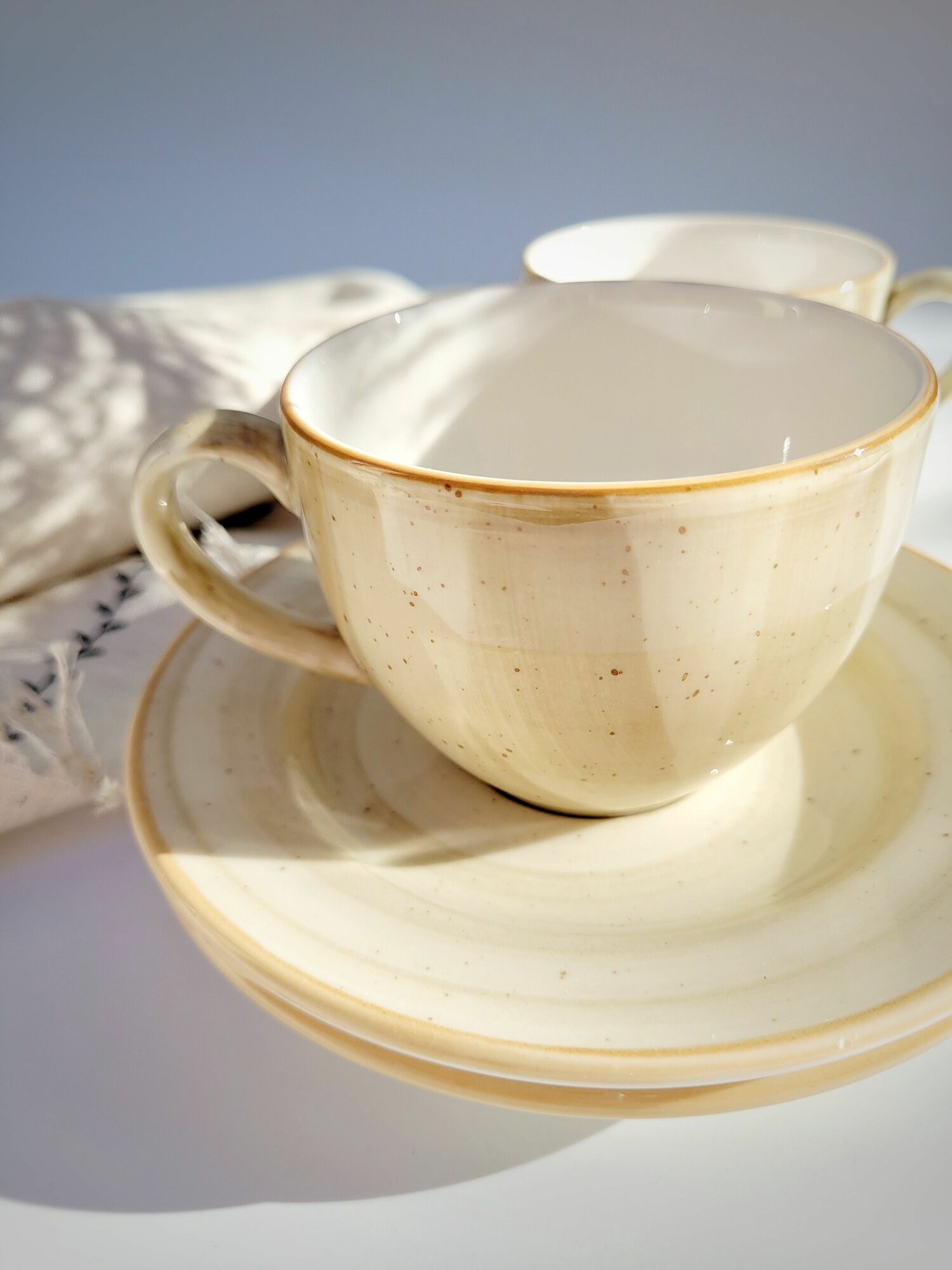 Набор чайная, кофейная пара Bonna "Патера" 2 шт, бежевые 230 мл. Ударопрочный, профессиональный фарфор.
