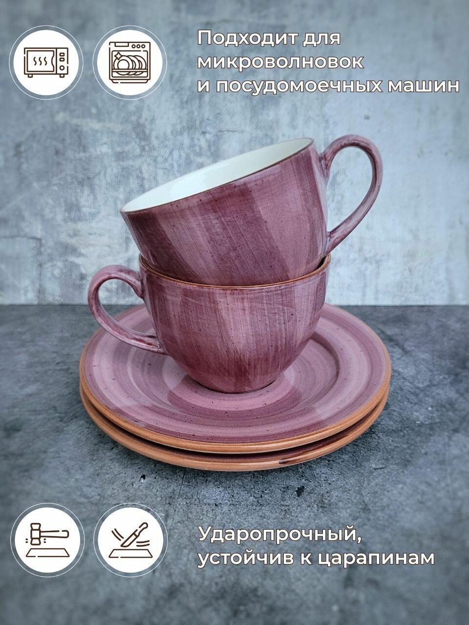 СохранитьНабор чайные пары на 1 персону "Aura Blackberry", 230 мл, чашка с блюдцем, чайный сервиз, с рисунком Bonna. интересное: