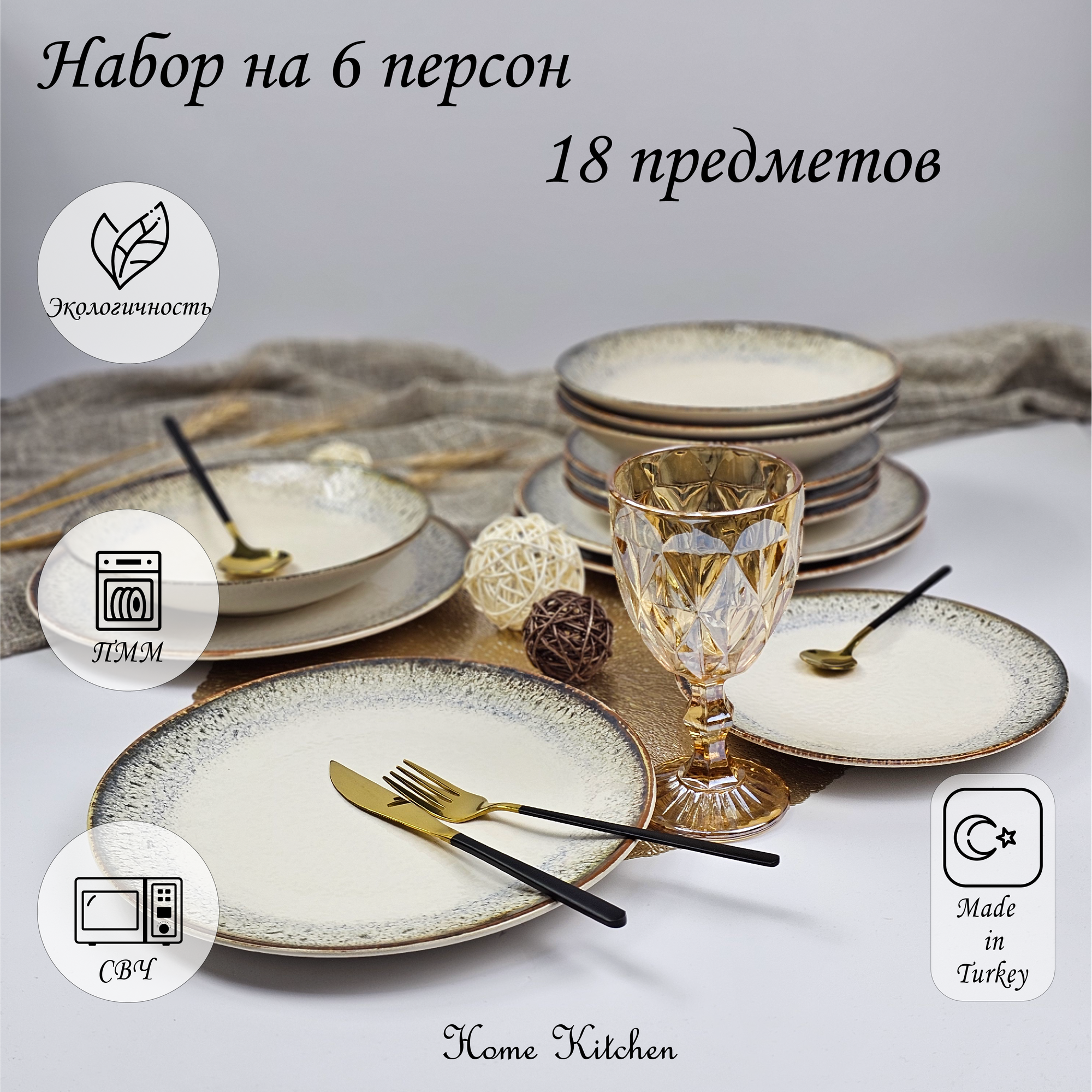 Набор столовой посуды бренда KERAMIKA серии "EGE" на 6 персон (18 предметов). интересное: