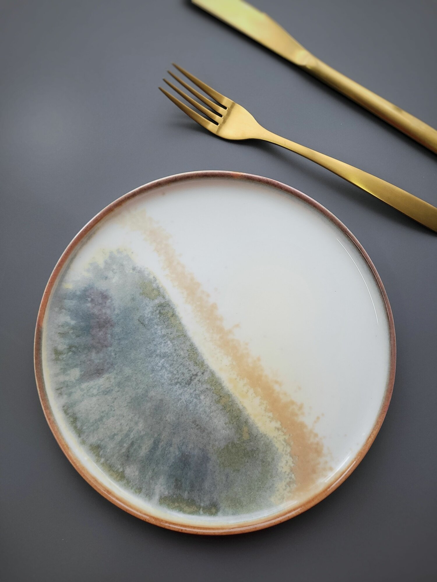 Набор тарелок обеденных круглых, золото "Snell" 2 шт, 21 см. Ударопрочный, профессиональный фарфор.
