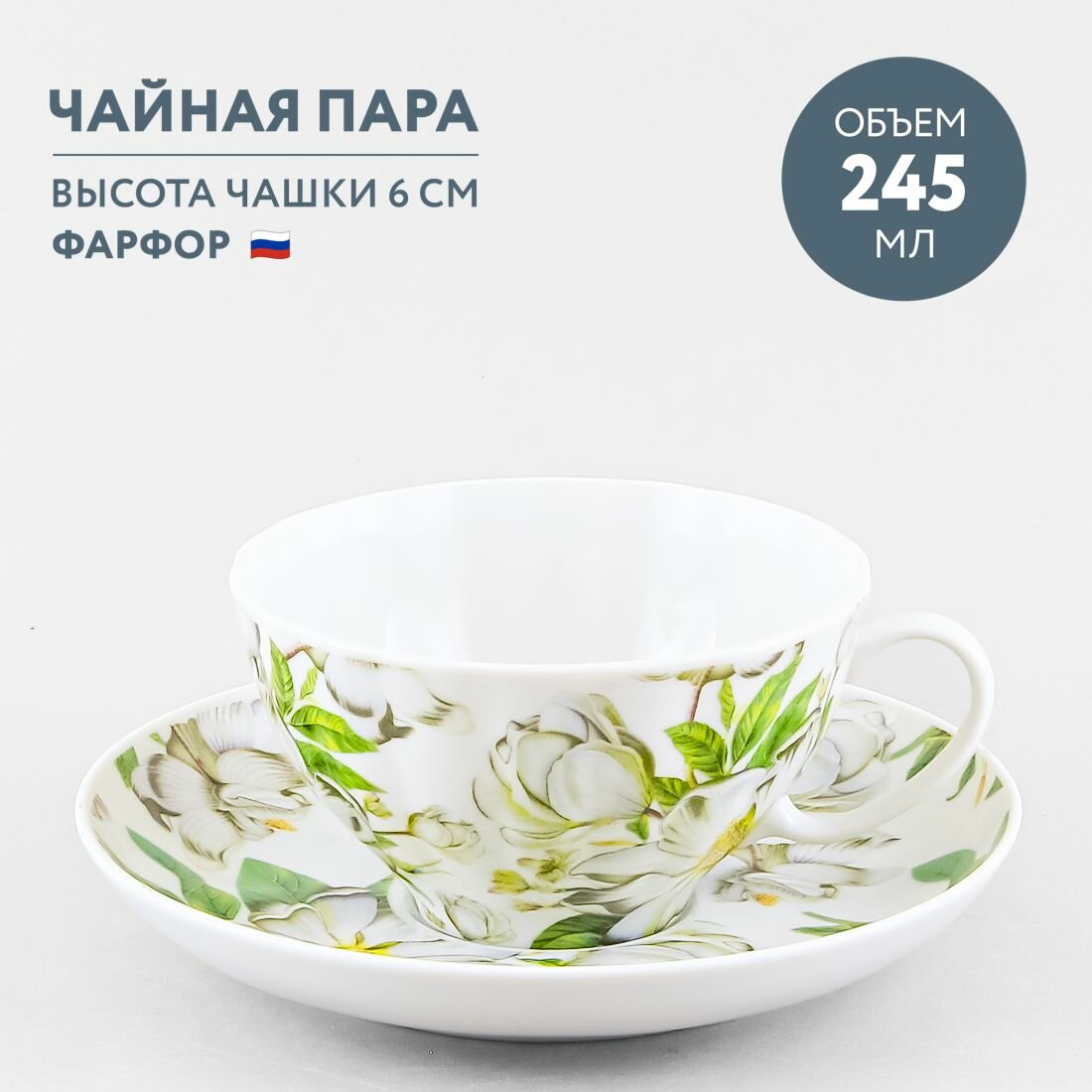 Чайная пара фарфоровая 245 мл Дулевский фарфор Шепот лепестков