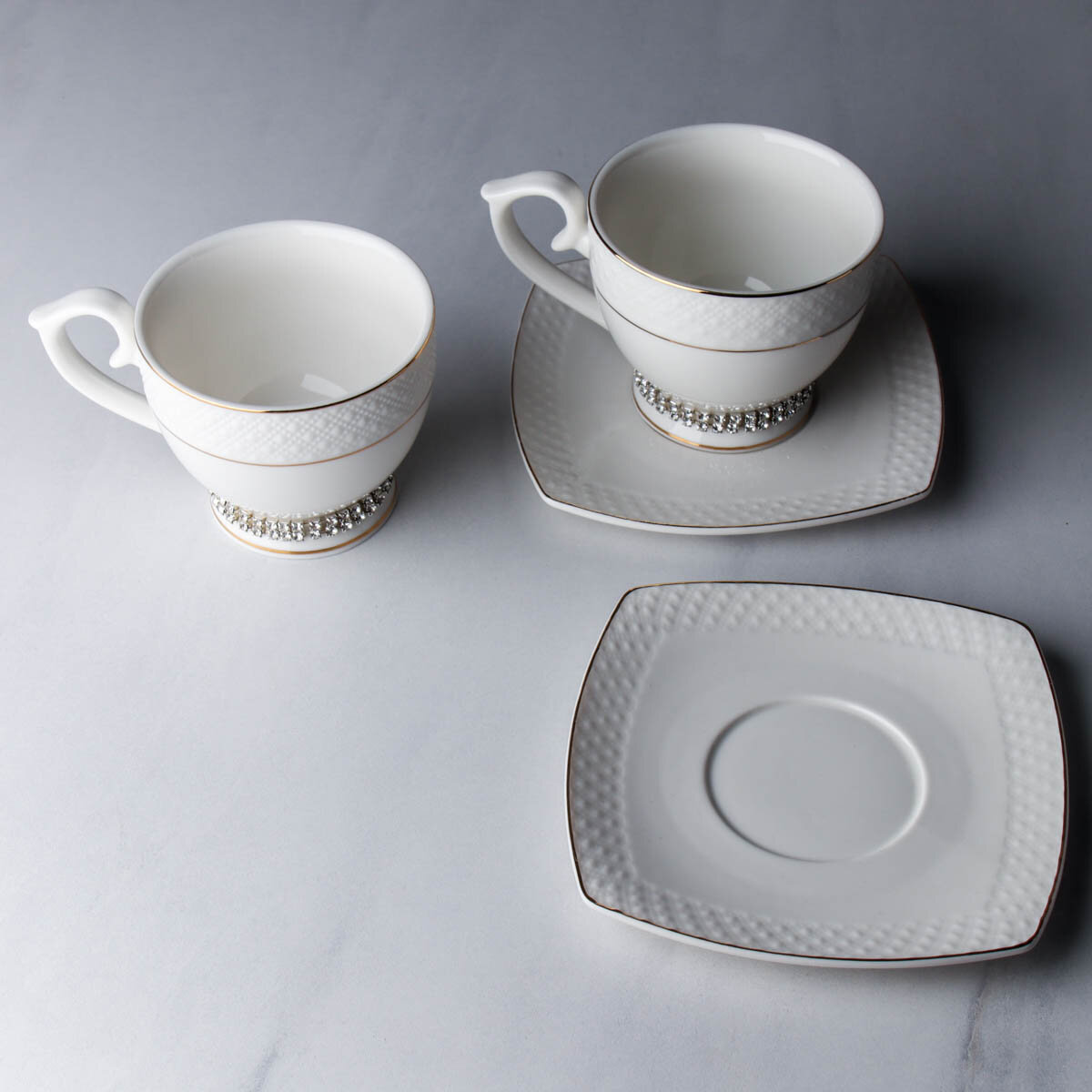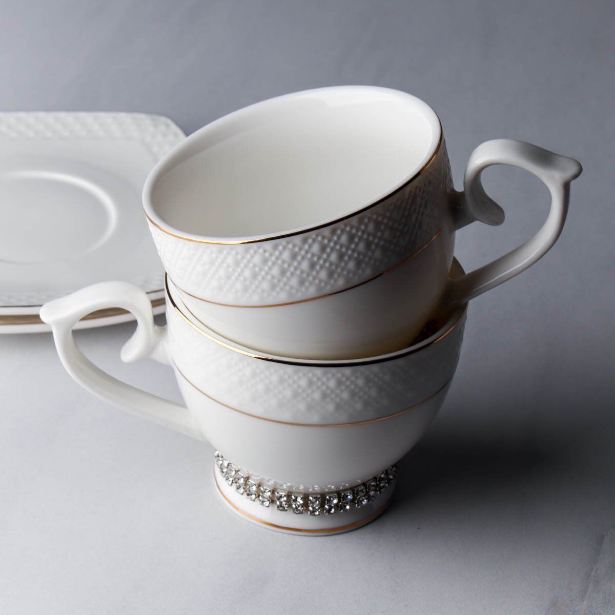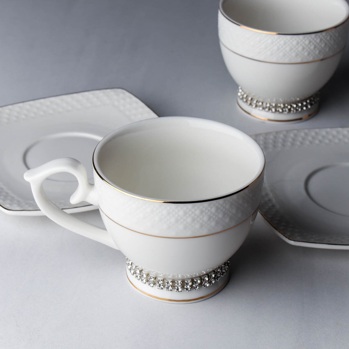 Чайная пара "Кларис" 250 мл, фарфор со стразами